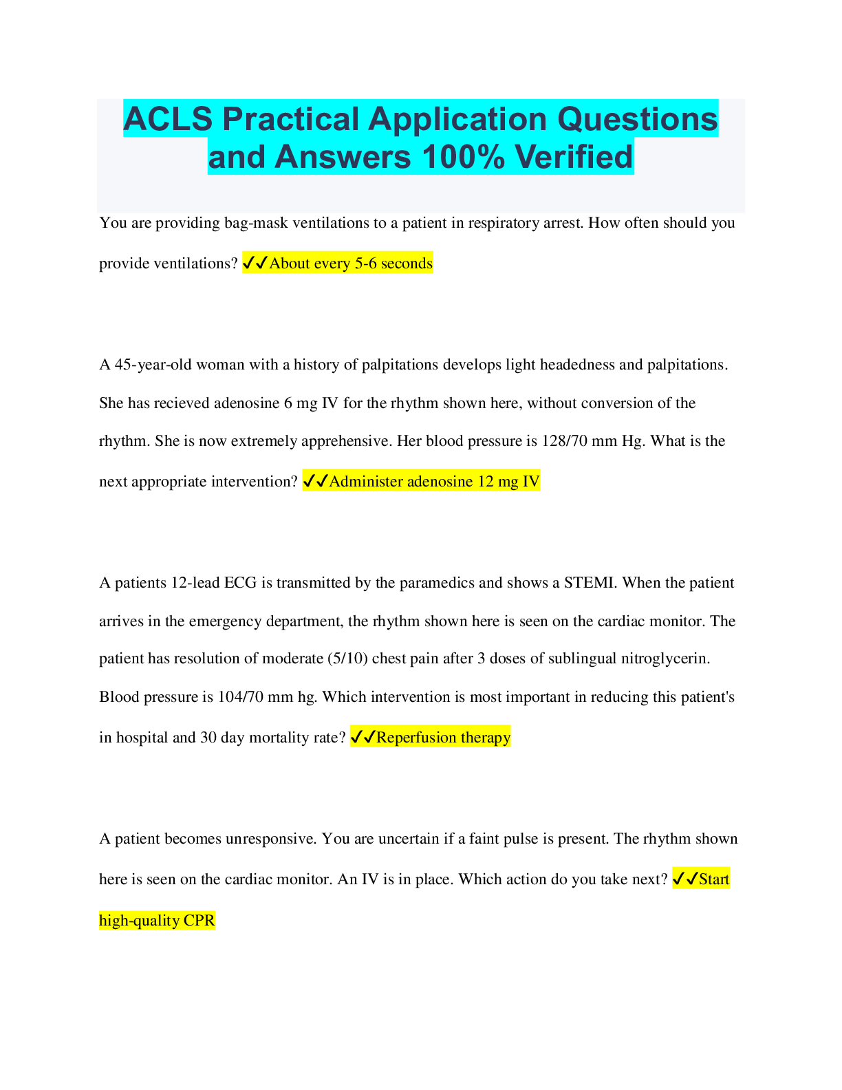 Social Sciences > QUESTIONS & ANSWERS > ACLS Practical Application Questions and Answers 100% Verified (All)