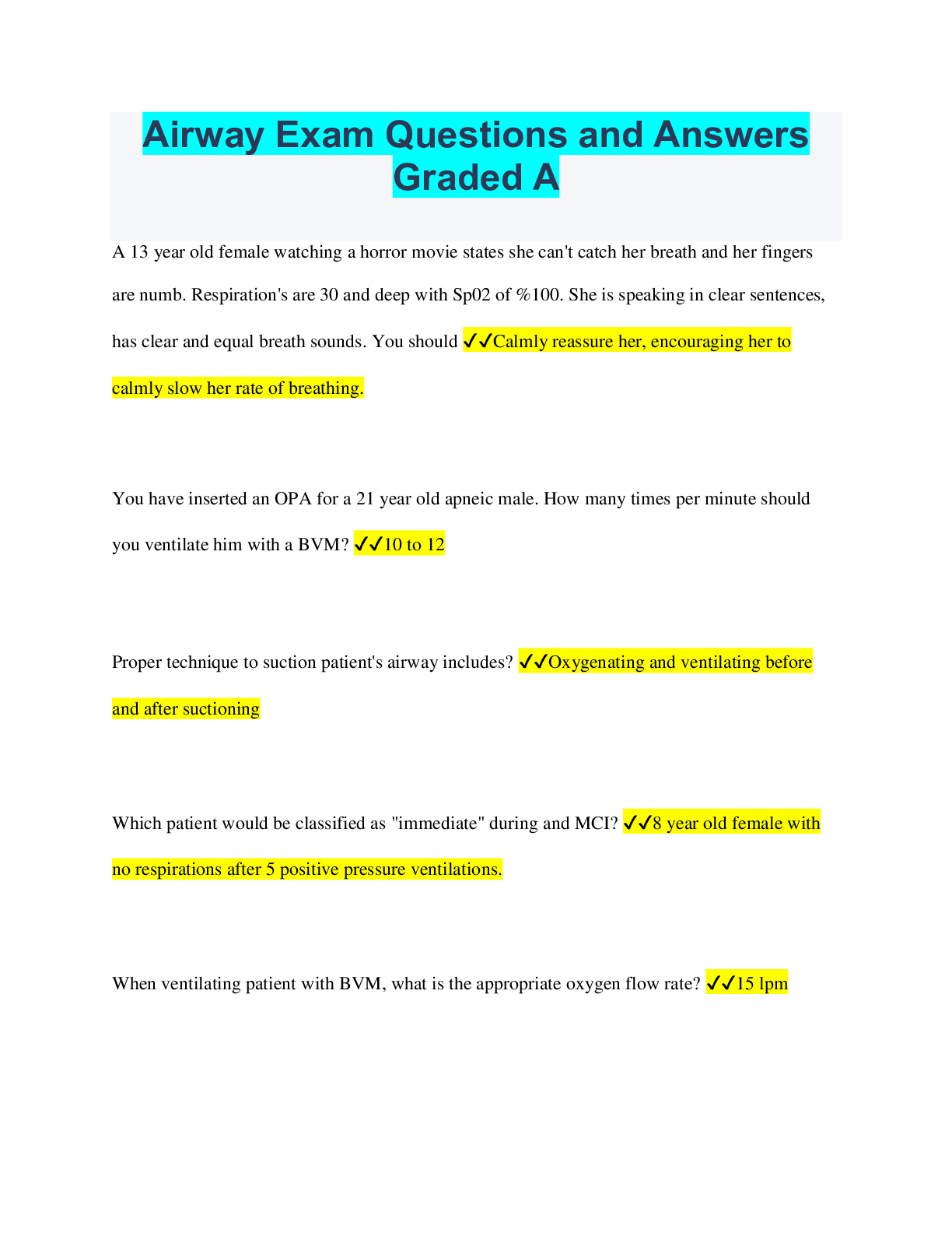 Social Sciences > QUESTIONS & ANSWERS > Airway Exam Questions and Answers Graded A (All)