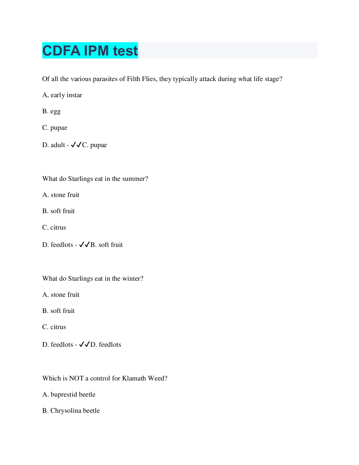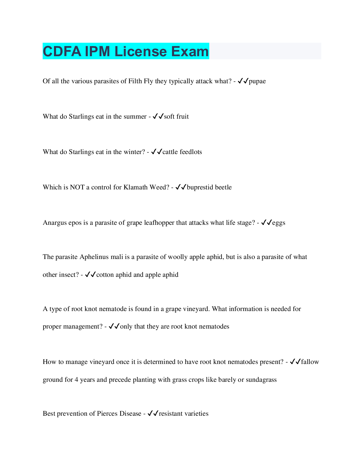 Social Sciences > QUESTIONS & ANSWERS > CDFA IPM License Exam (All)