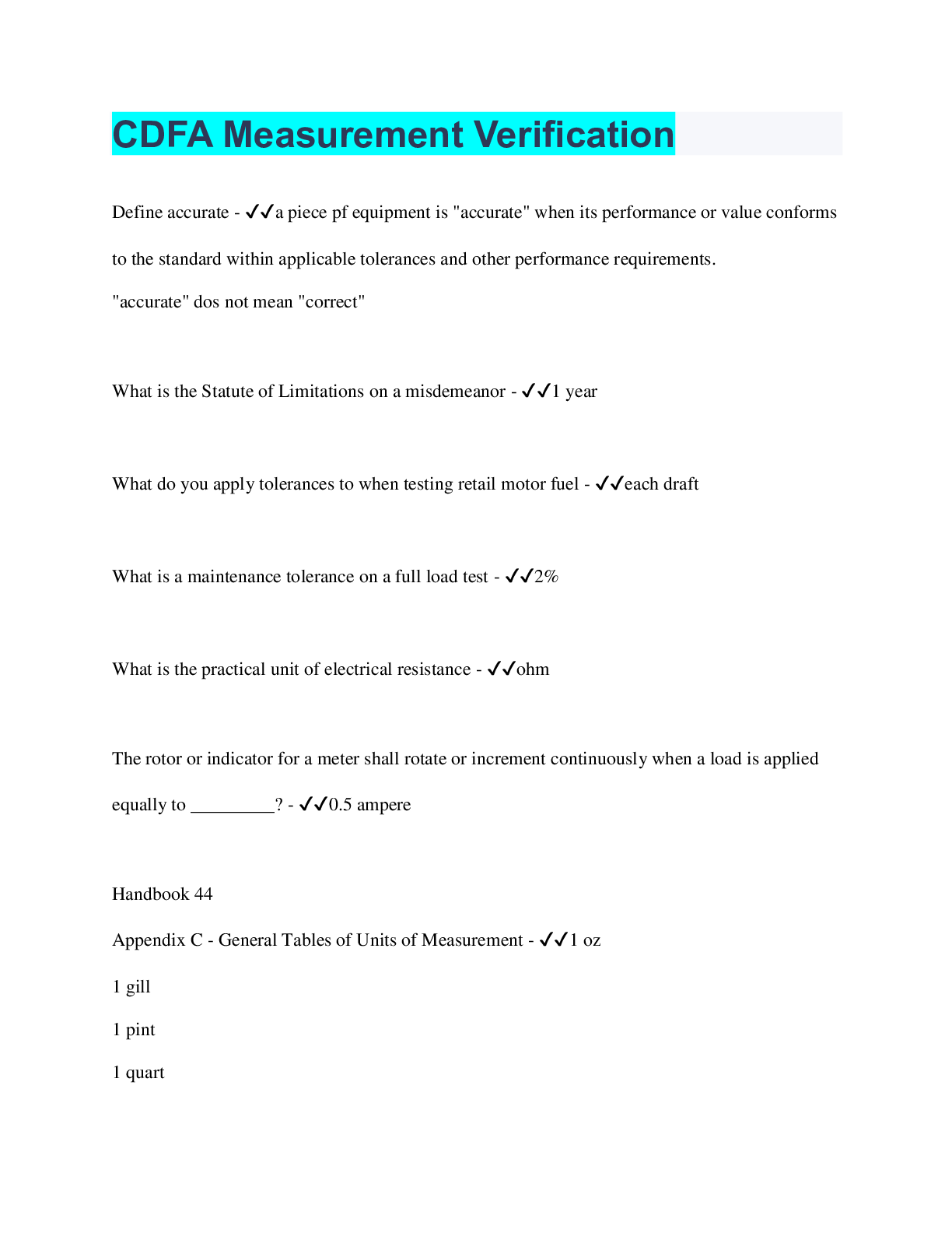 Social Sciences > QUESTIONS & ANSWERS > CDFA Measurement Verification (All)