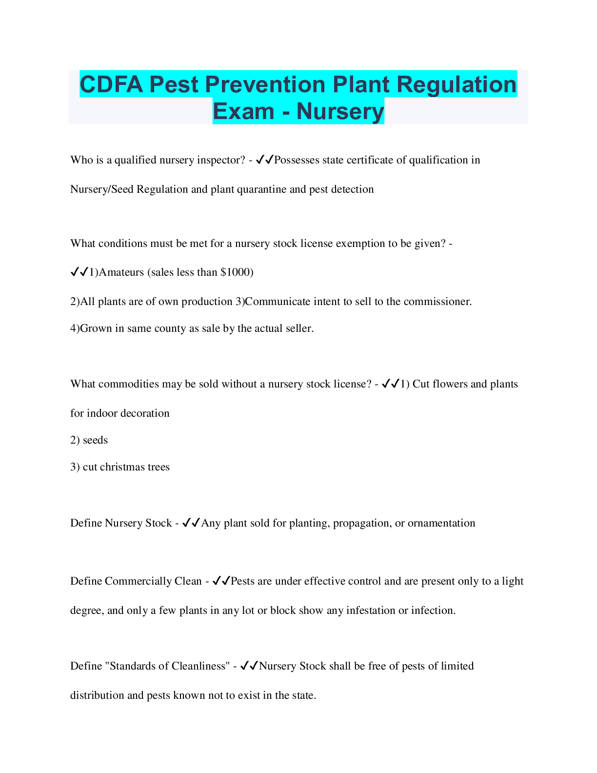 Social Sciences > QUESTIONS & ANSWERS > CDFA Pest Prevention Plant Regulation Exam - Nursery (All)