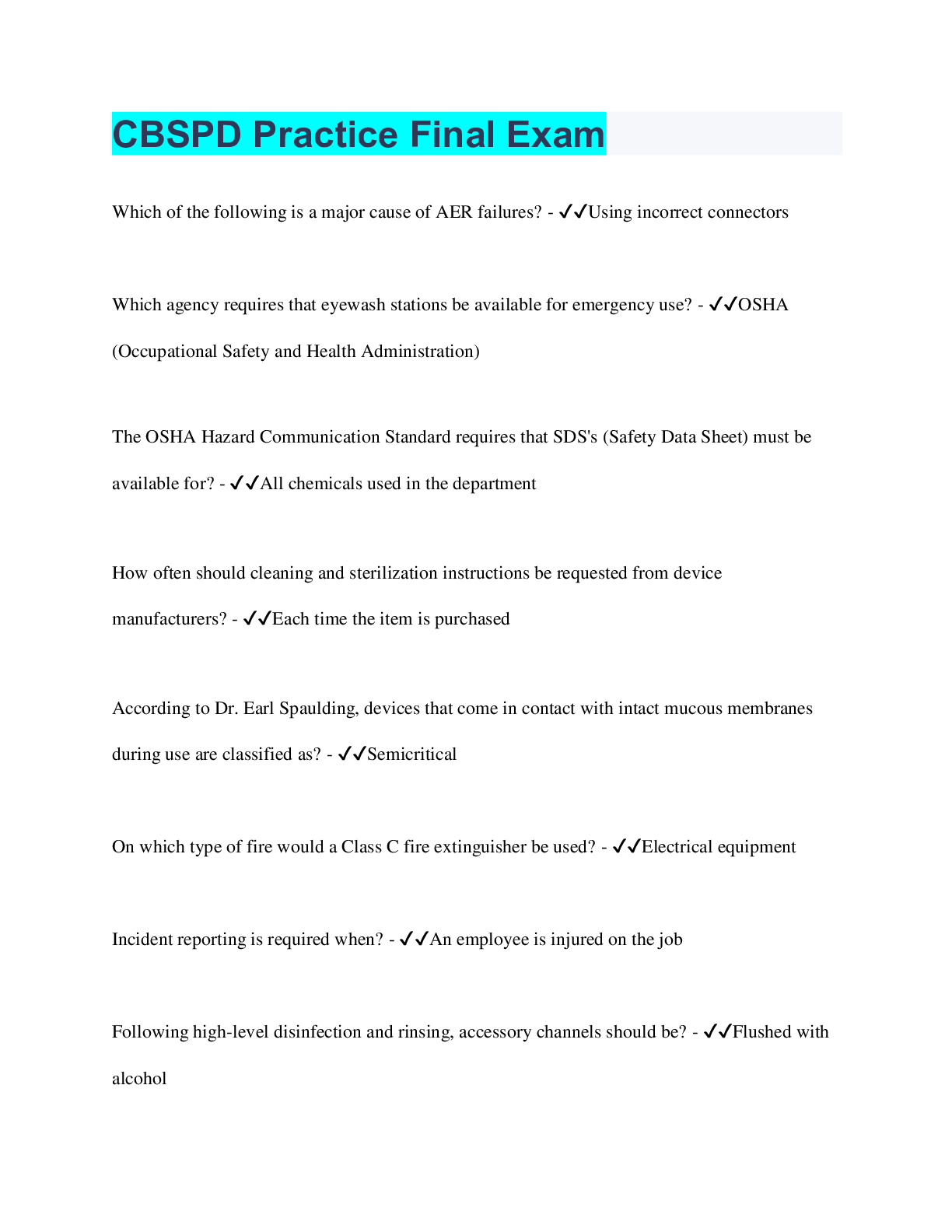 Social Sciences > QUESTIONS & ANSWERS > CBSPD Practice Final Exam (All)