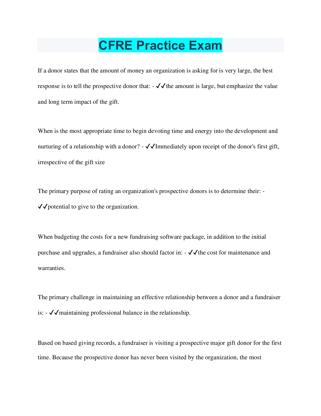Social Sciences > QUESTIONS & ANSWERS > CFRE Practice Exam (All)