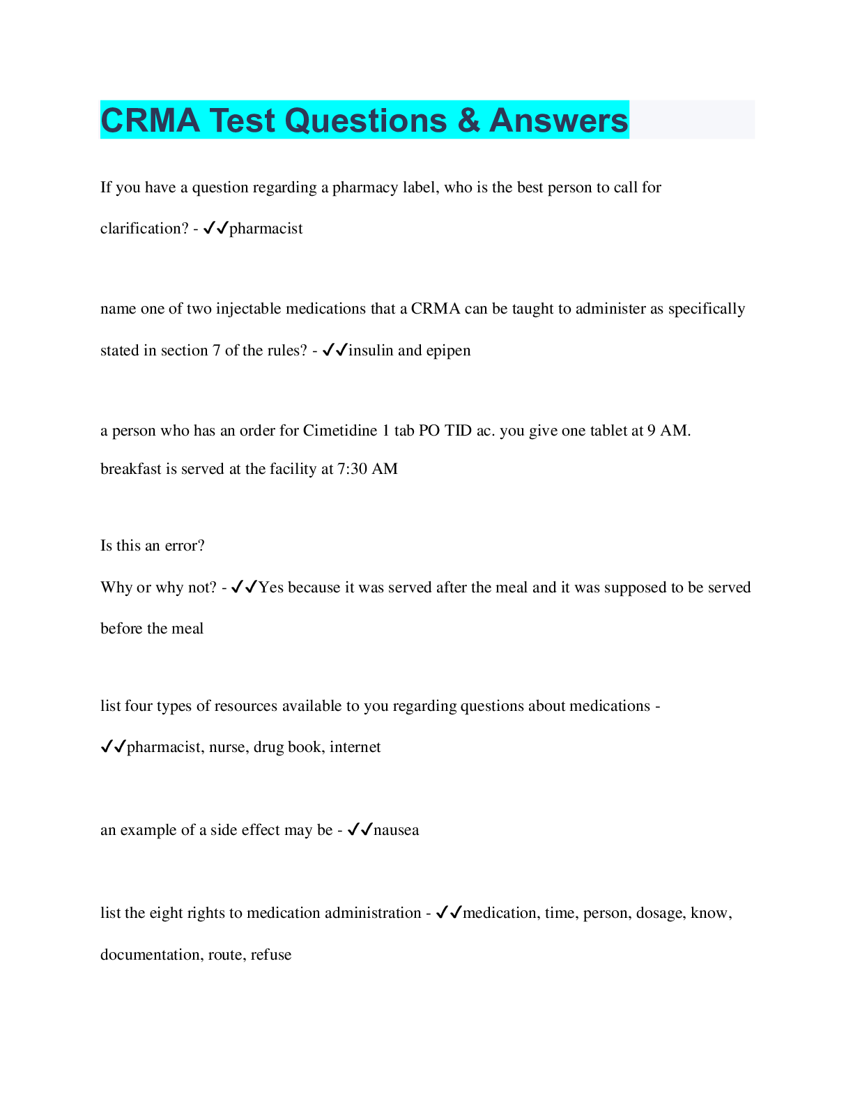 Social Sciences > QUESTIONS & ANSWERS > CRMA Test Questions & Answers (All)