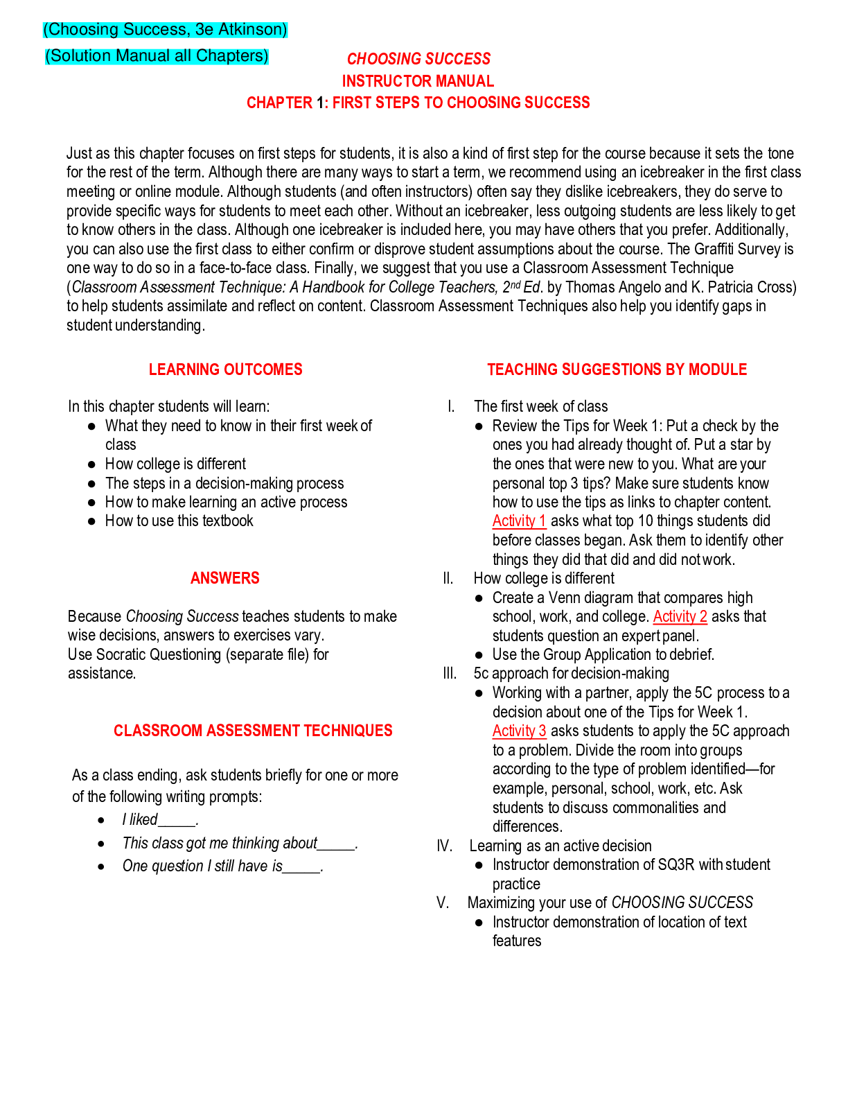 Social Sciences > SOLUTIONS MANUAL > Introductory Chemistry An Active Learning Approach 7th Edition By by Mark S. Cracolice, Edward I. Peters (Solutions Manual ) (All)