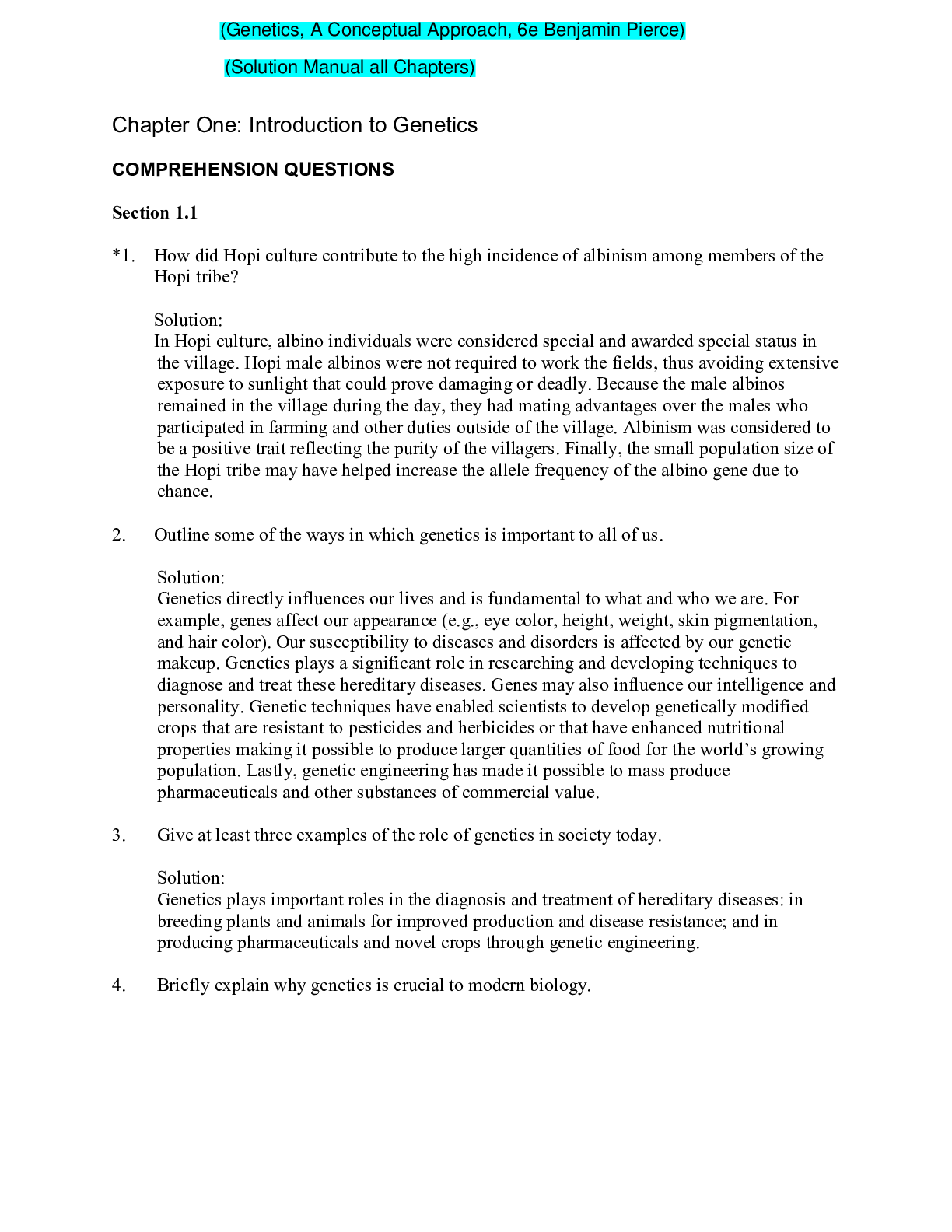 Social Sciences > SOLUTIONS MANUAL > Genetics, A Conceptual Approach, 6e Benjamin Pierce (Solution Manual) (All)