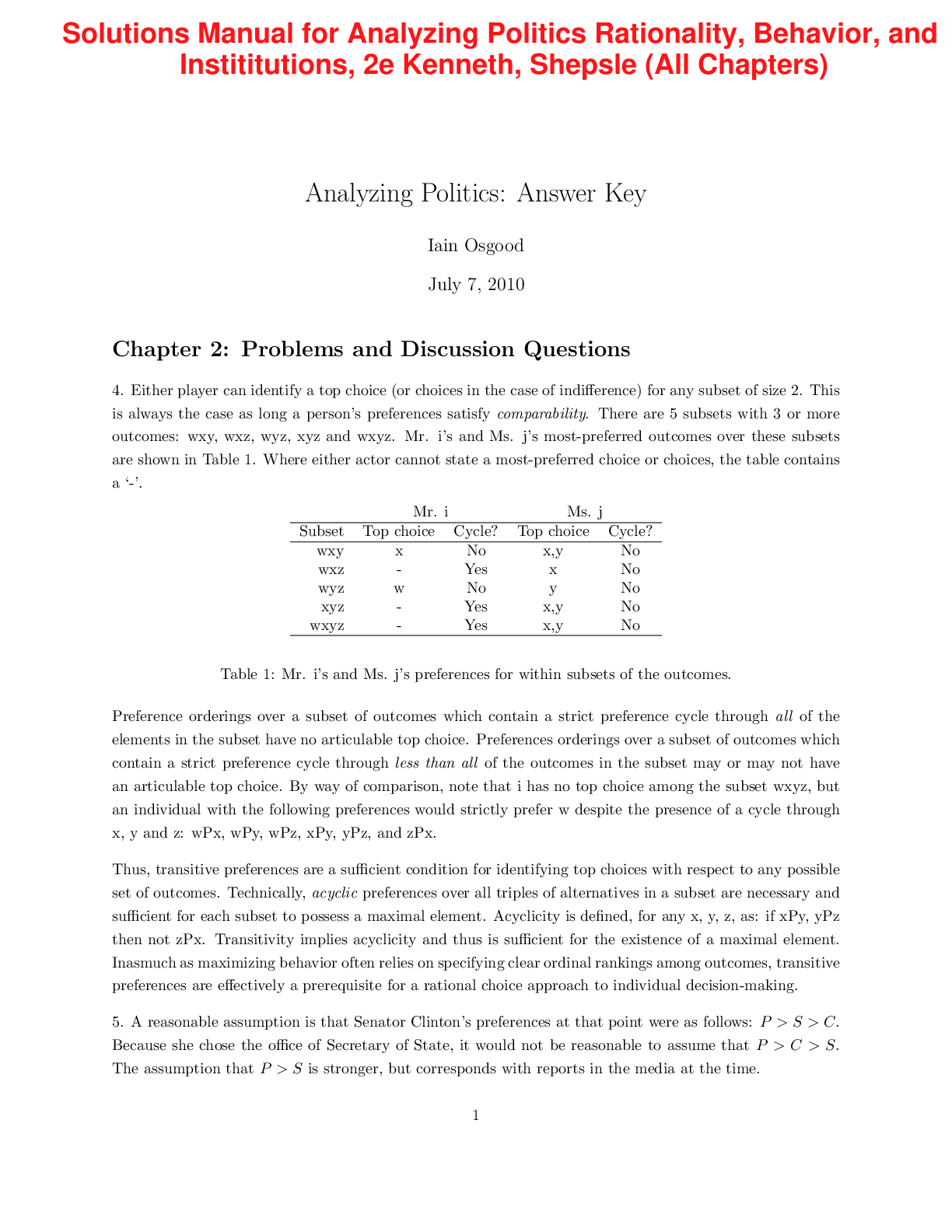 Social Sciences > SOLUTIONS MANUAL > Analyzing Politics Rationality, Behavior, and Instititutions, 2e Kenneth, Shepsle (Solution Manual) (All)
