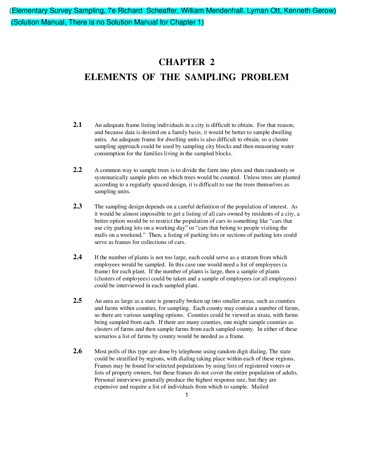 Social Sciences > SOLUTIONS MANUAL > Elementary Survey Sampling, 7e Richard Scheaffer, William Mendenhall. Lyman Ott, Kenneth Gerow (Solution Manaul) (All)