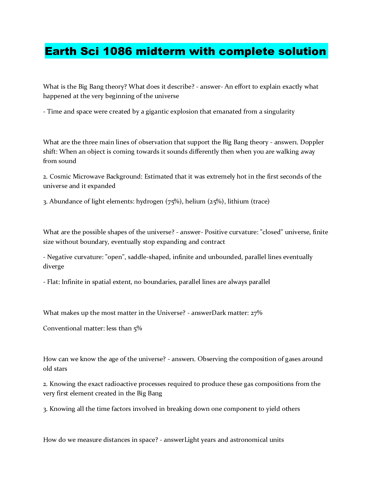 Social Sciences > QUESTIONS & ANSWERS > Earth Sci 1086 midterm with complete solution (All)