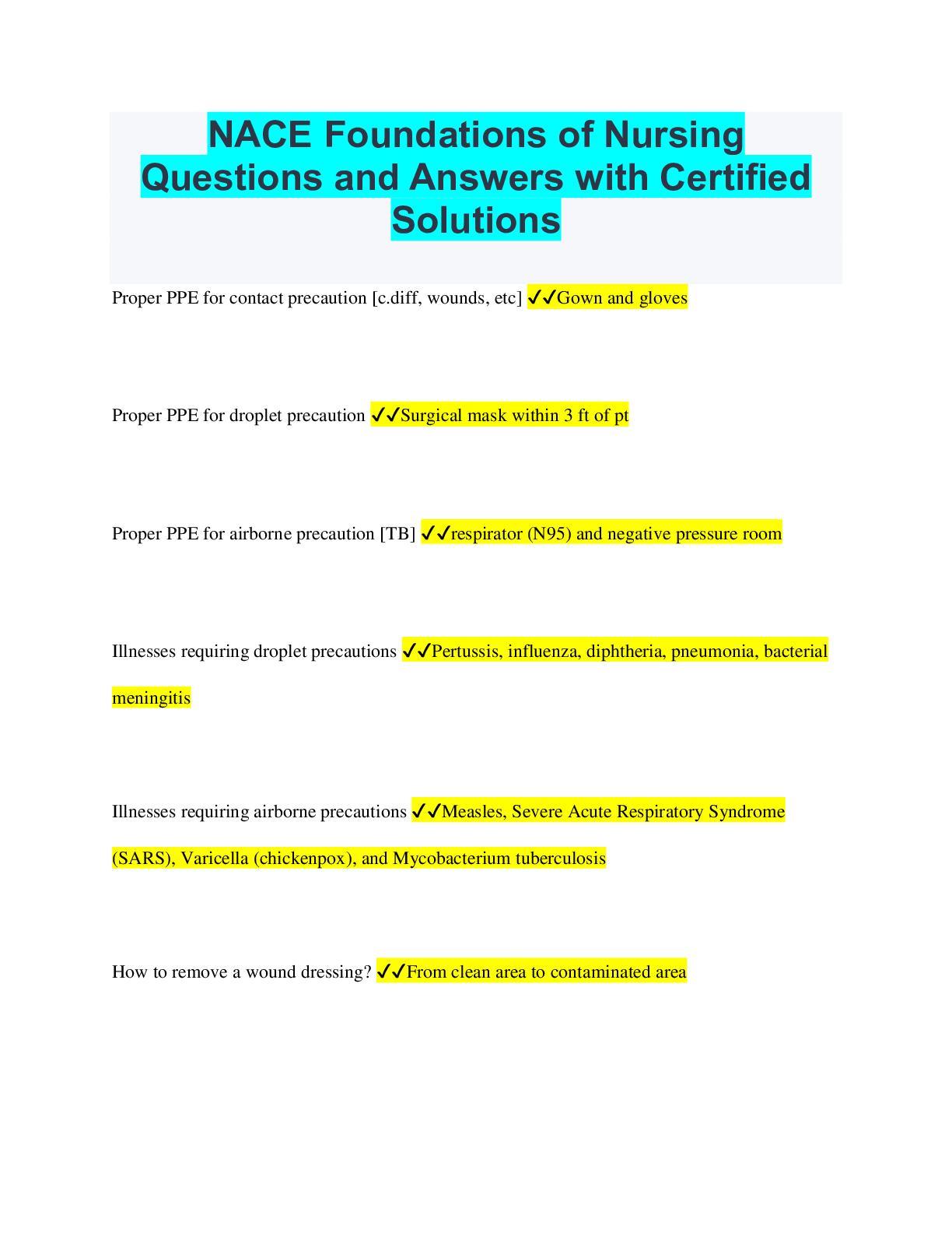Social Sciences > QUESTIONS & ANSWERS > NACE Foundations of Nursing Questions and Answers with Certified Solutions (All)