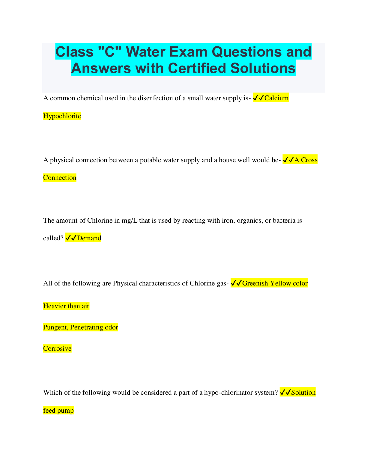 Social Sciences > QUESTIONS & ANSWERS > Class "C" Water Exam Questions and Answers with Certified Solutions (All)