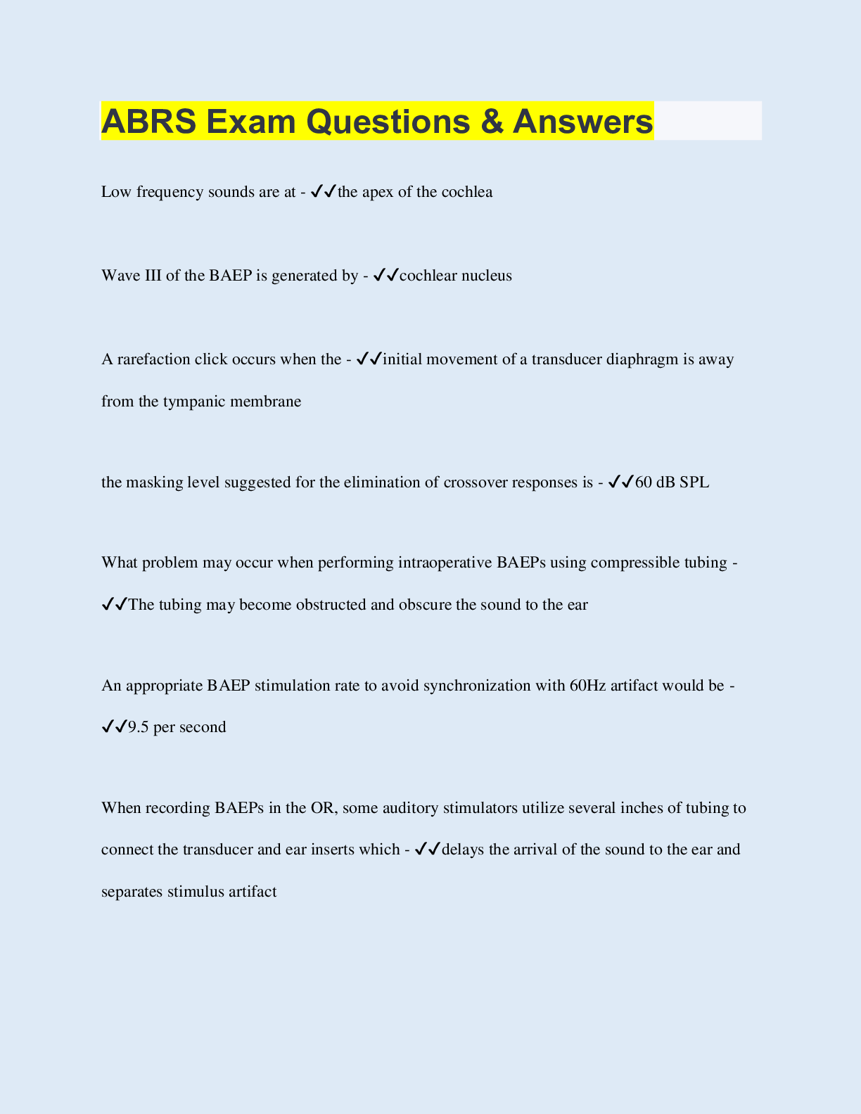 Social Sciences > QUESTIONS & ANSWERS > ABRS Exam Questions & Answers (All)