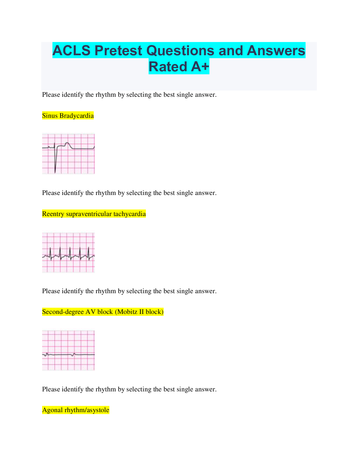 Social Sciences > QUESTIONS & ANSWERS > ACLS Pretest Questions and Answers Rated A+ (All)