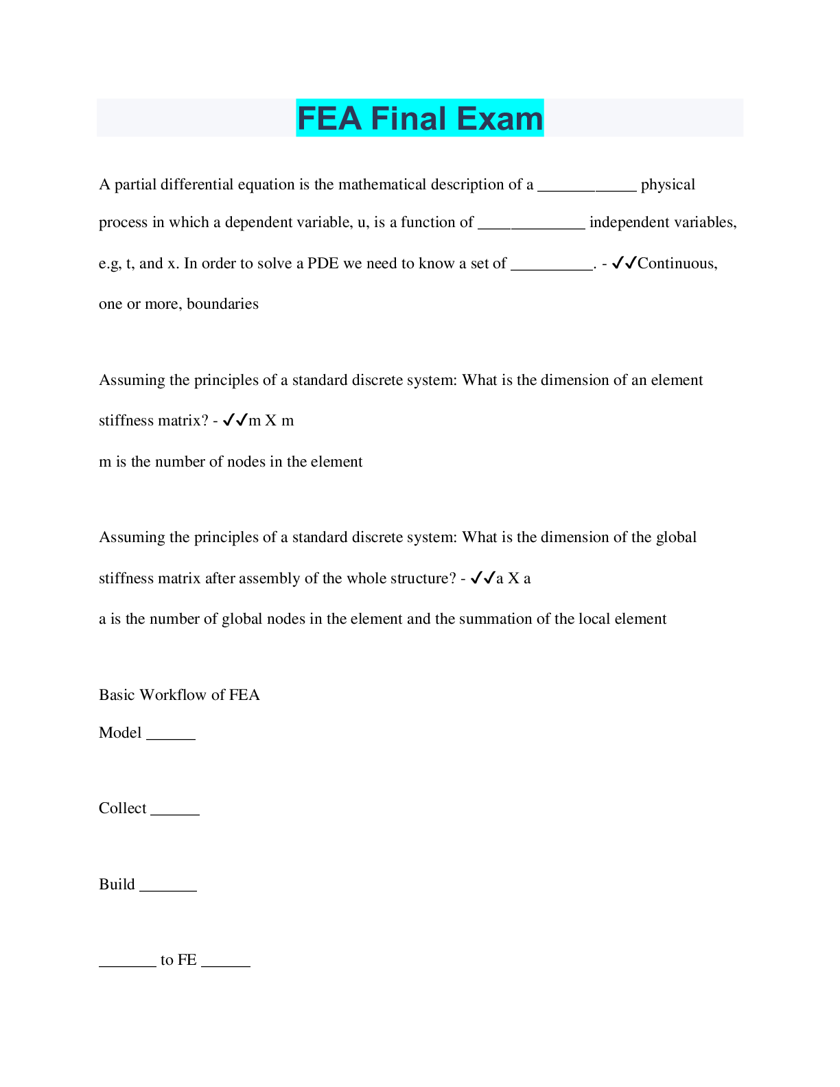 Social Sciences > QUESTIONS & ANSWERS > FEA Final Exam (All)