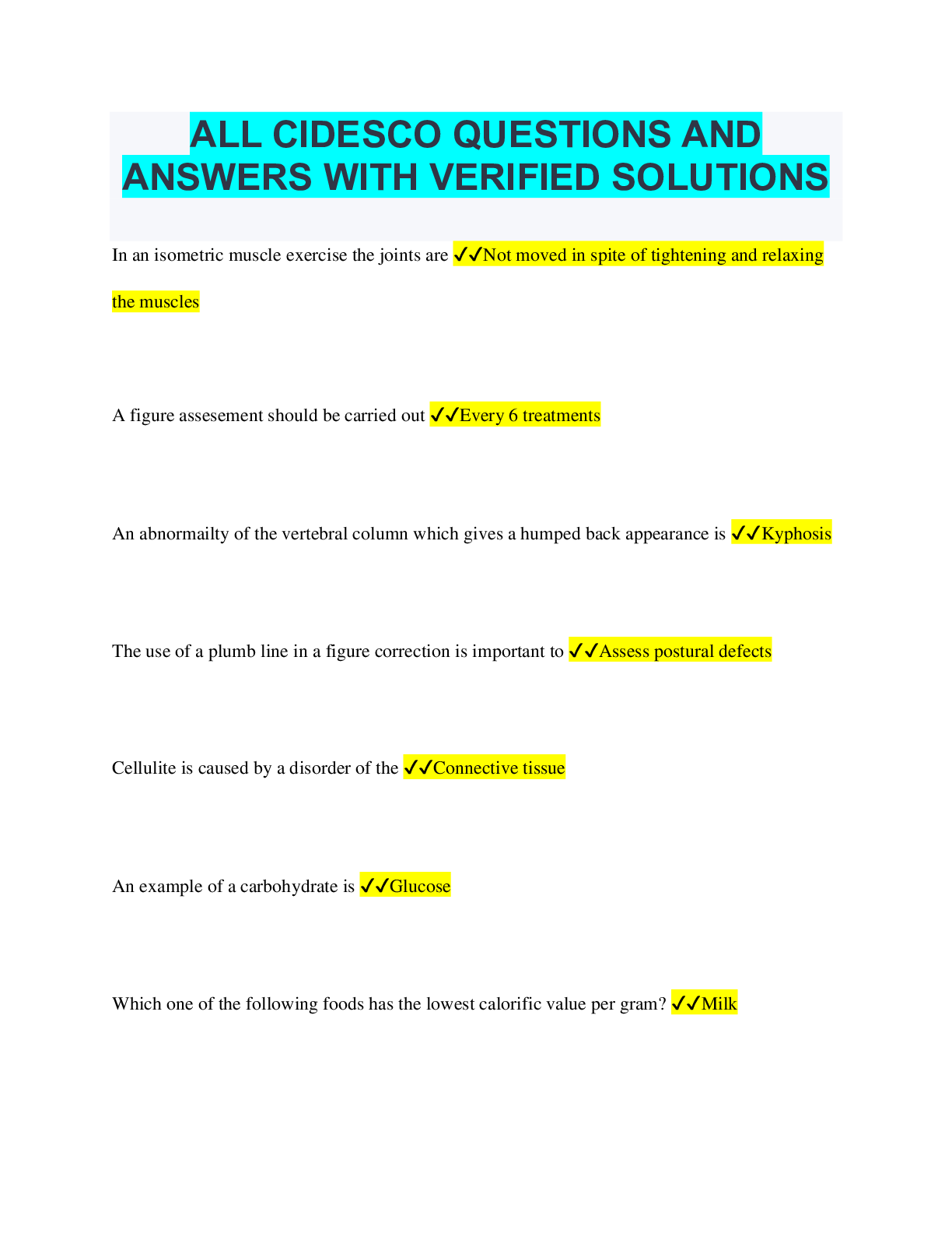 Social Sciences > QUESTIONS & ANSWERS > ALL CIDESCO QUESTIONS AND ANSWERS WITH VERIFIED SOLUTIONS (All)