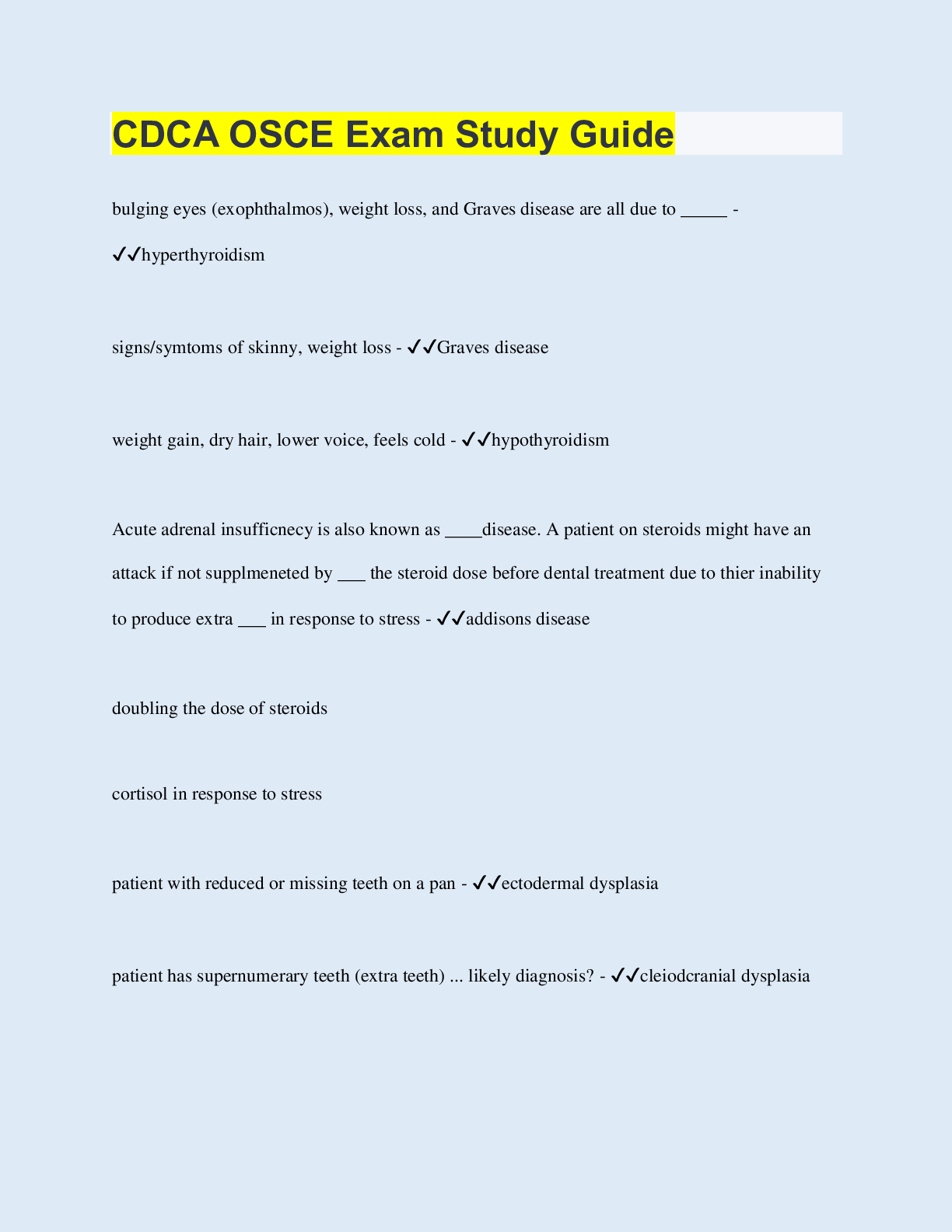 Social Sciences > QUESTIONS & ANSWERS > CDCA OSCE Exam Study Guide (All)