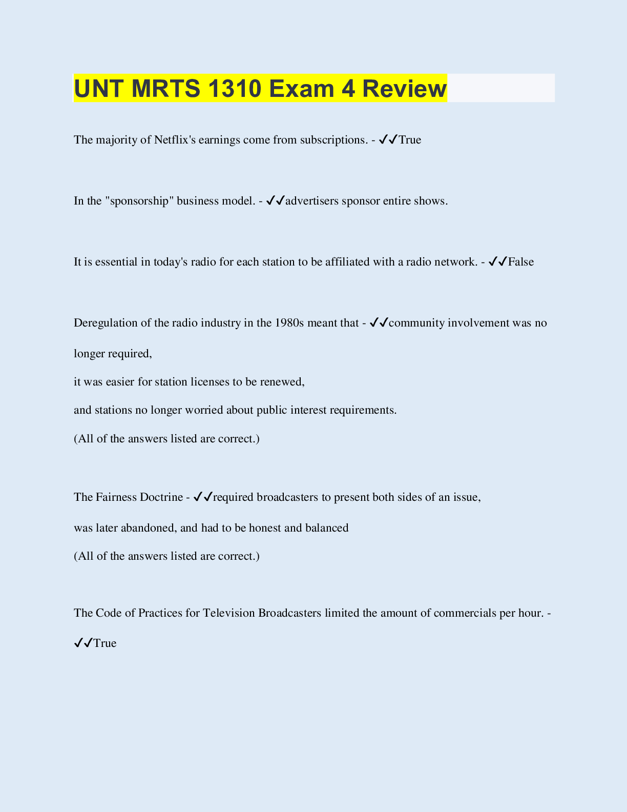 Social Sciences > QUESTIONS & ANSWERS > UNT MRTS 1310 Exam 4 Review (All)