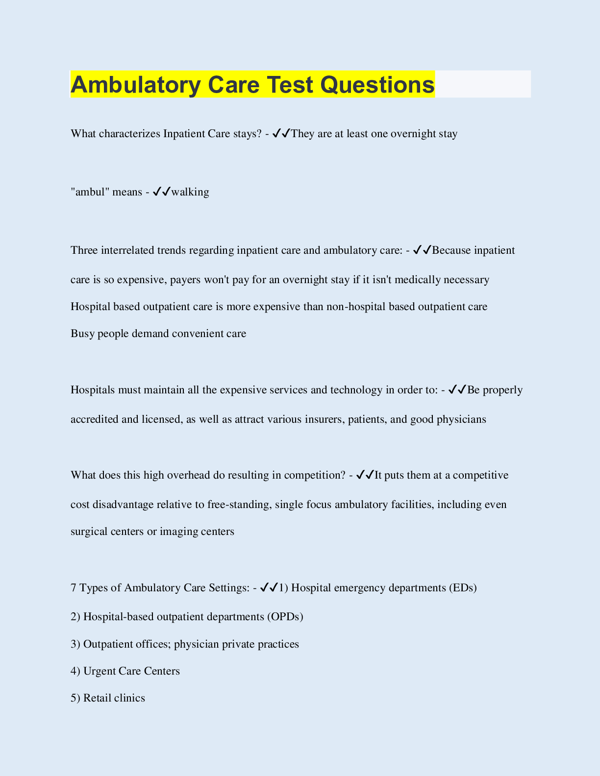 Social Sciences > QUESTIONS & ANSWERS > Ambulatory Care Test Questions (All)