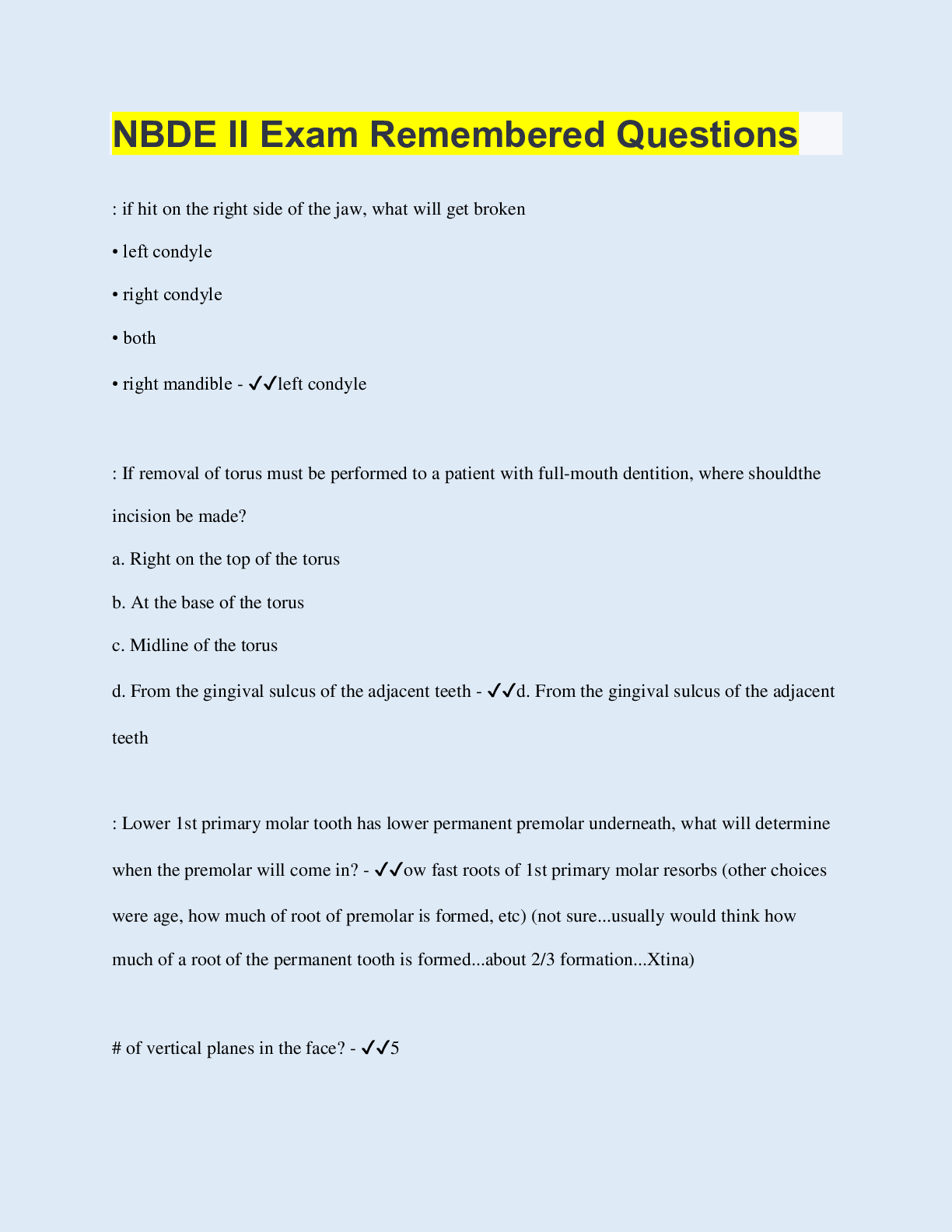 Social Sciences > QUESTIONS & ANSWERS > NBDE II Exam Remembered Questions (All)