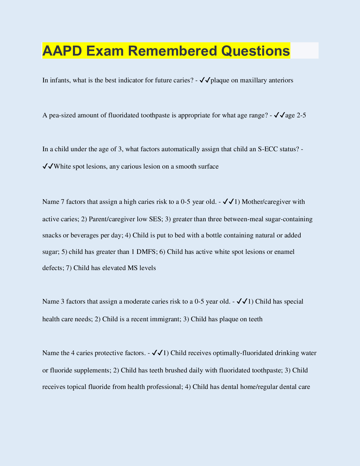 Social Sciences > QUESTIONS & ANSWERS > AAPD Exam Remembered Questions (All)