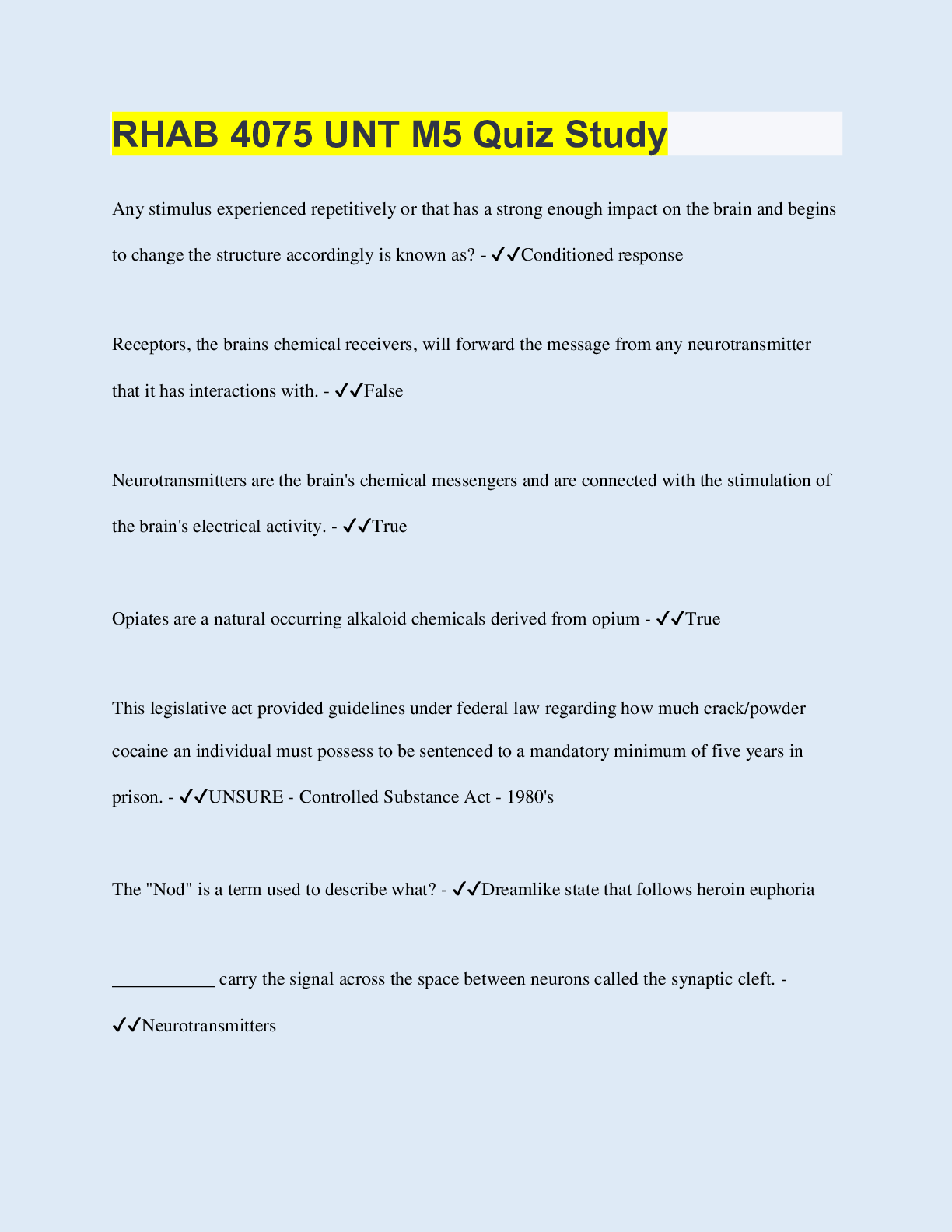Social Sciences > QUESTIONS & ANSWERS > RHAB 4075 UNT M5 Quiz Study (All)
