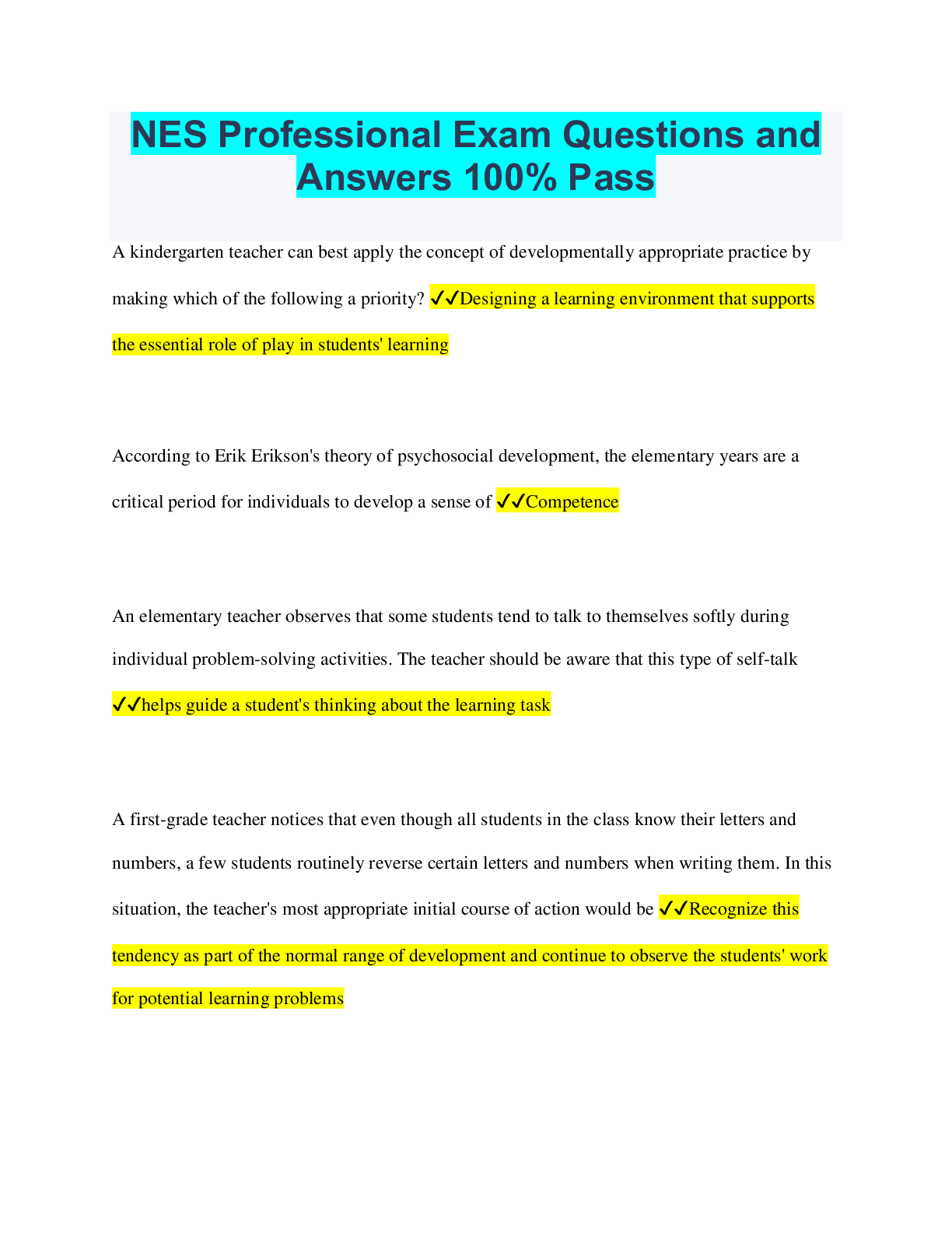Social Sciences > QUESTIONS & ANSWERS > NES Professional Exam Questions and Answers 100% Pass (All)