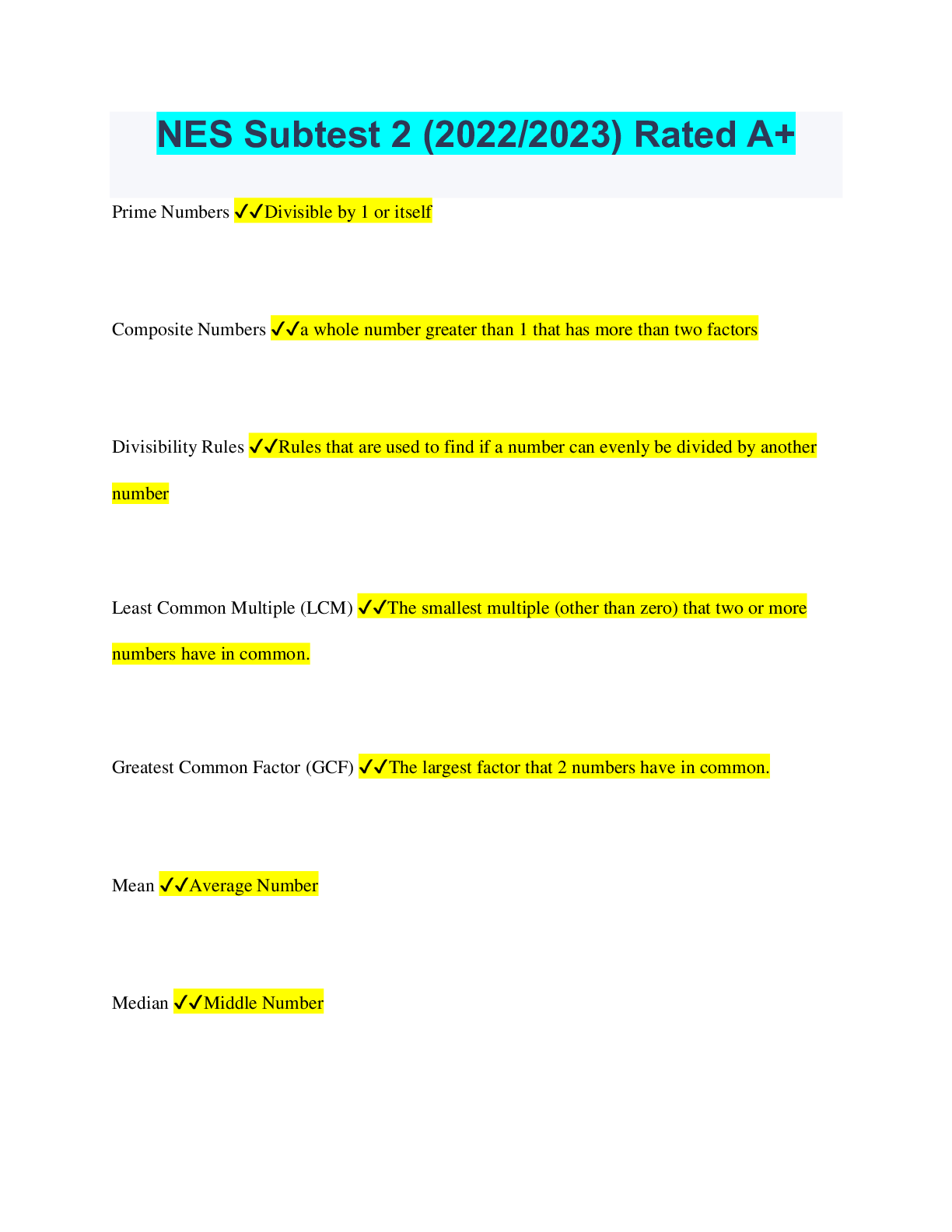 Social Sciences > QUESTIONS & ANSWERS > NES Subtest 2 (2022/2023) Rated A+ (All)