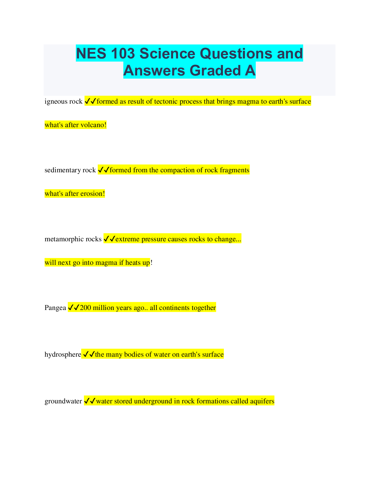 Social Sciences > QUESTIONS & ANSWERS > NES 103 Science Questions and Answers Graded A (All)