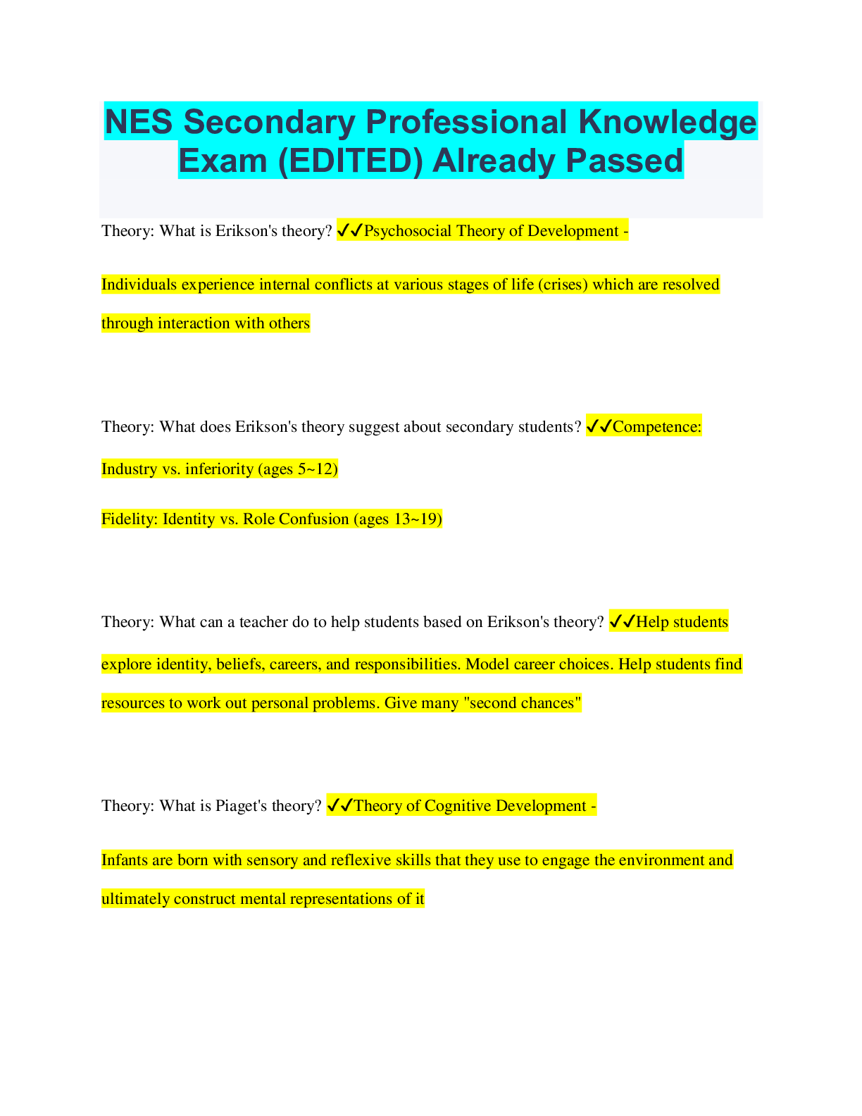 Social Sciences > QUESTIONS & ANSWERS > NES Secondary Professional Knowledge Exam Questions and Answers 100% Pass (All)