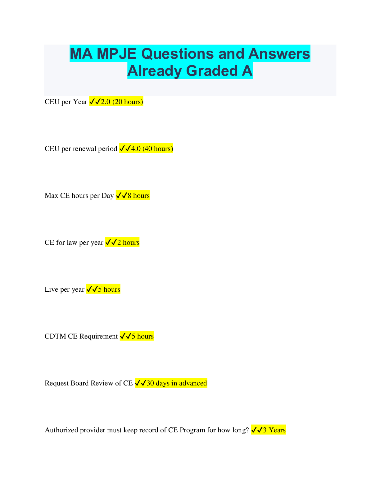 Social Sciences > QUESTIONS & ANSWERS > MA MPJE Questions and Answers Already Graded A (All)