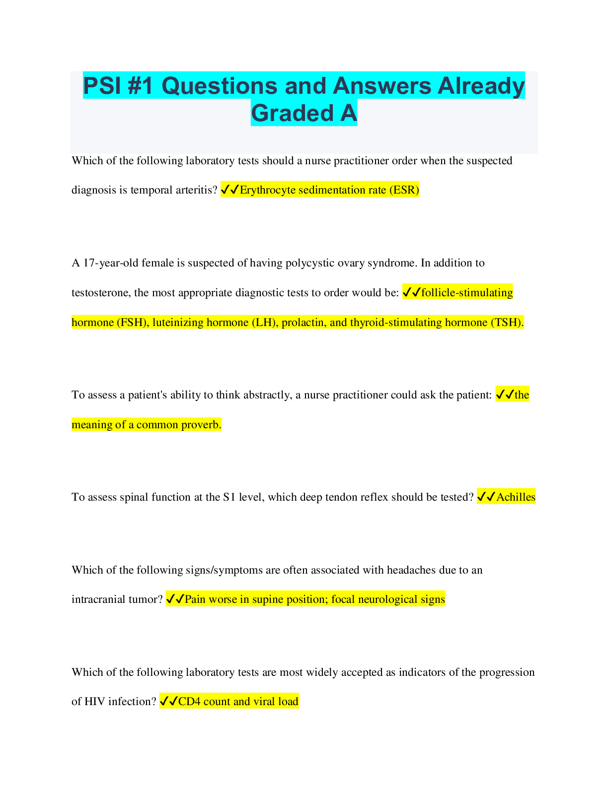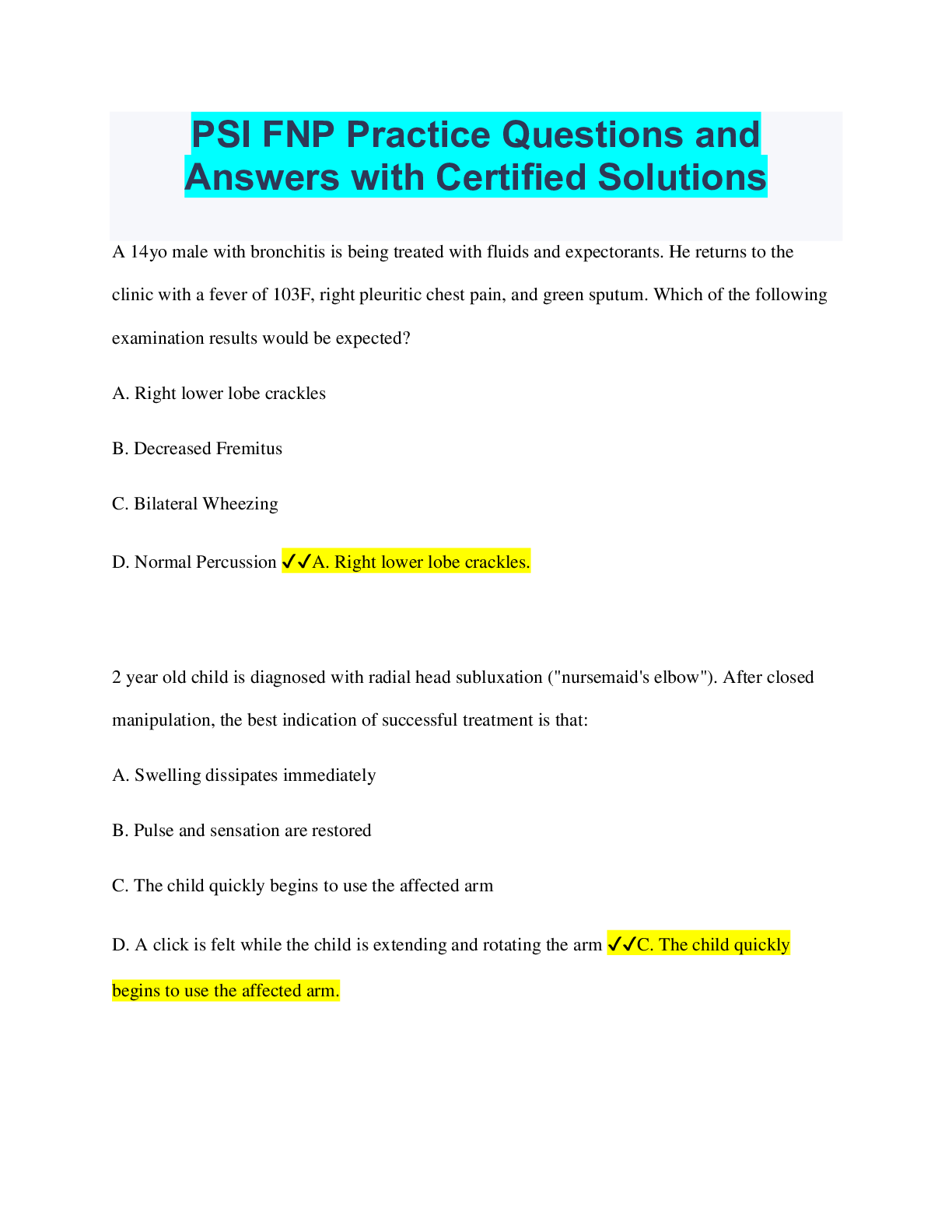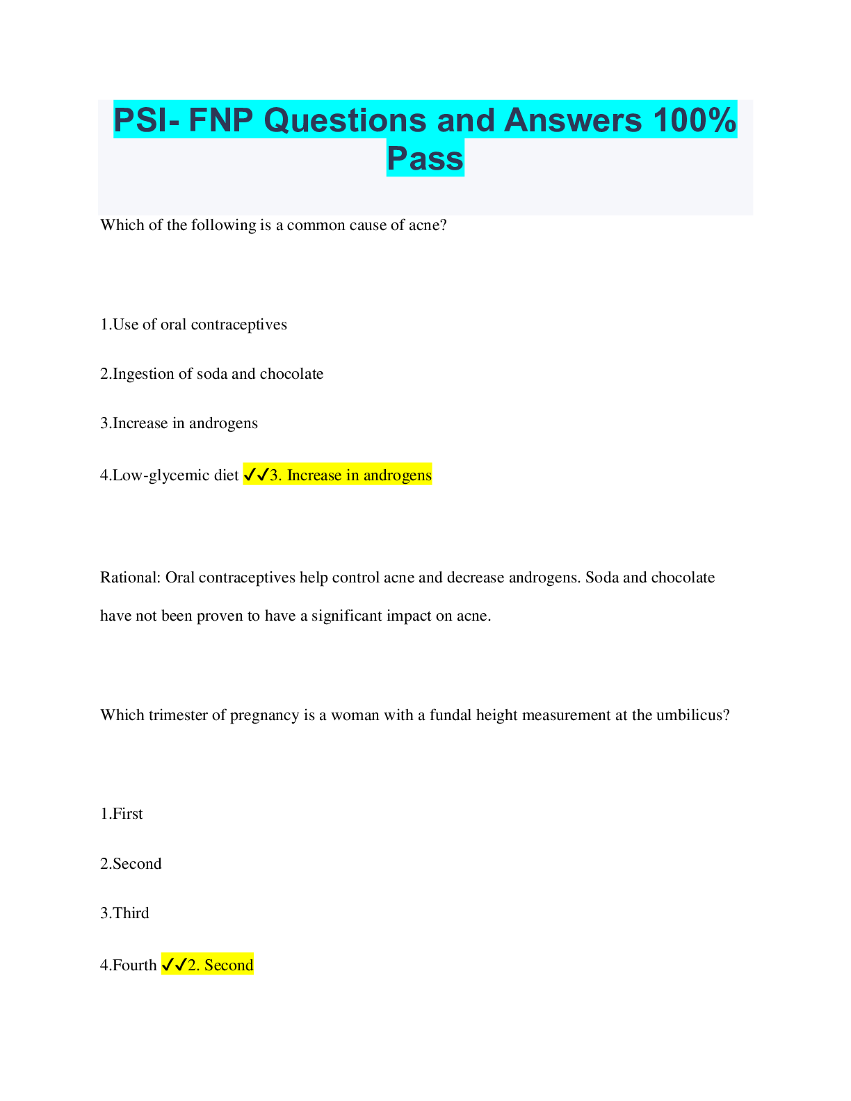 Social Sciences > QUESTIONS & ANSWERS > PSI FNP Practice Questions and Answers with Certified Solutions (All)
