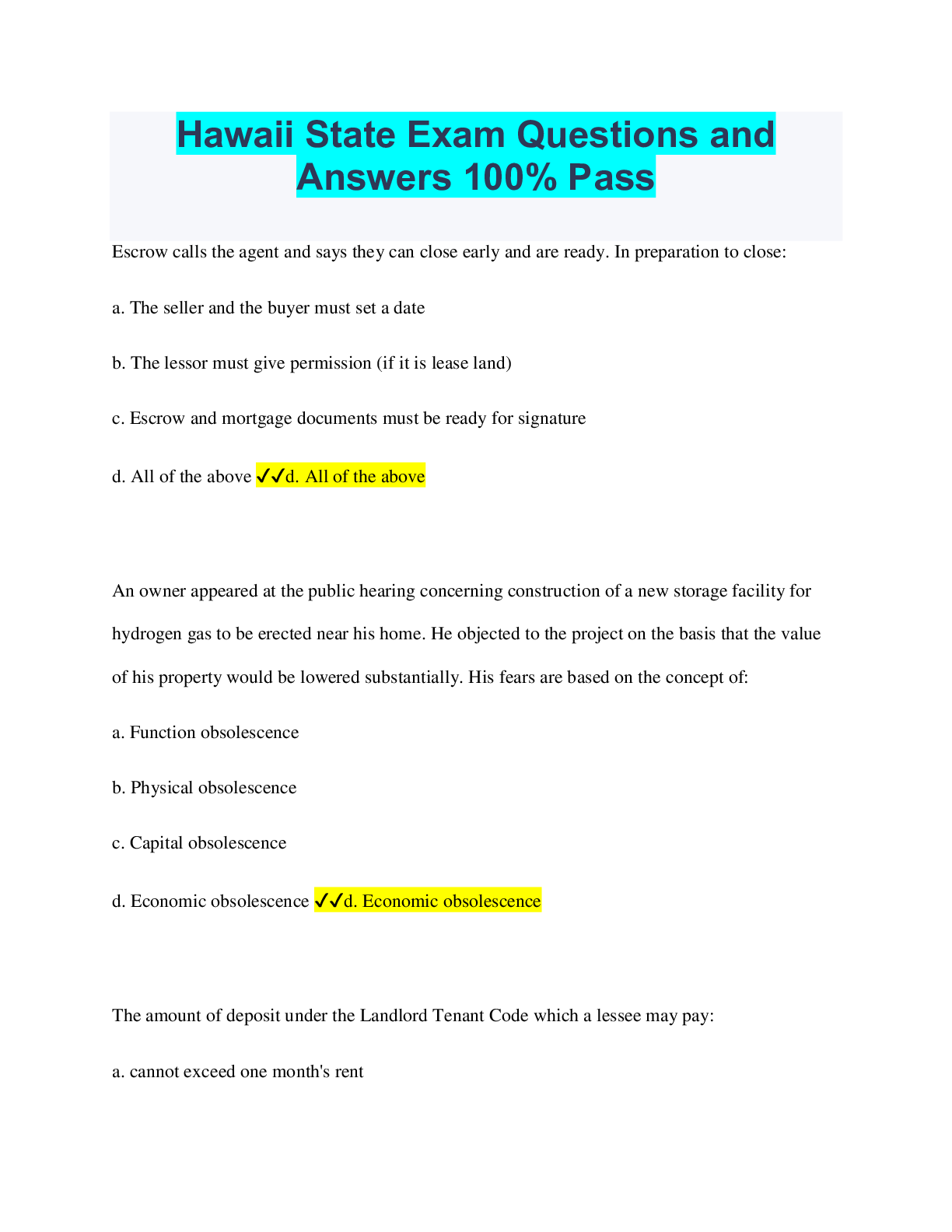 Social Sciences > QUESTIONS & ANSWERS > Hawaii State Exam Questions and Answers 100% Pass (All)