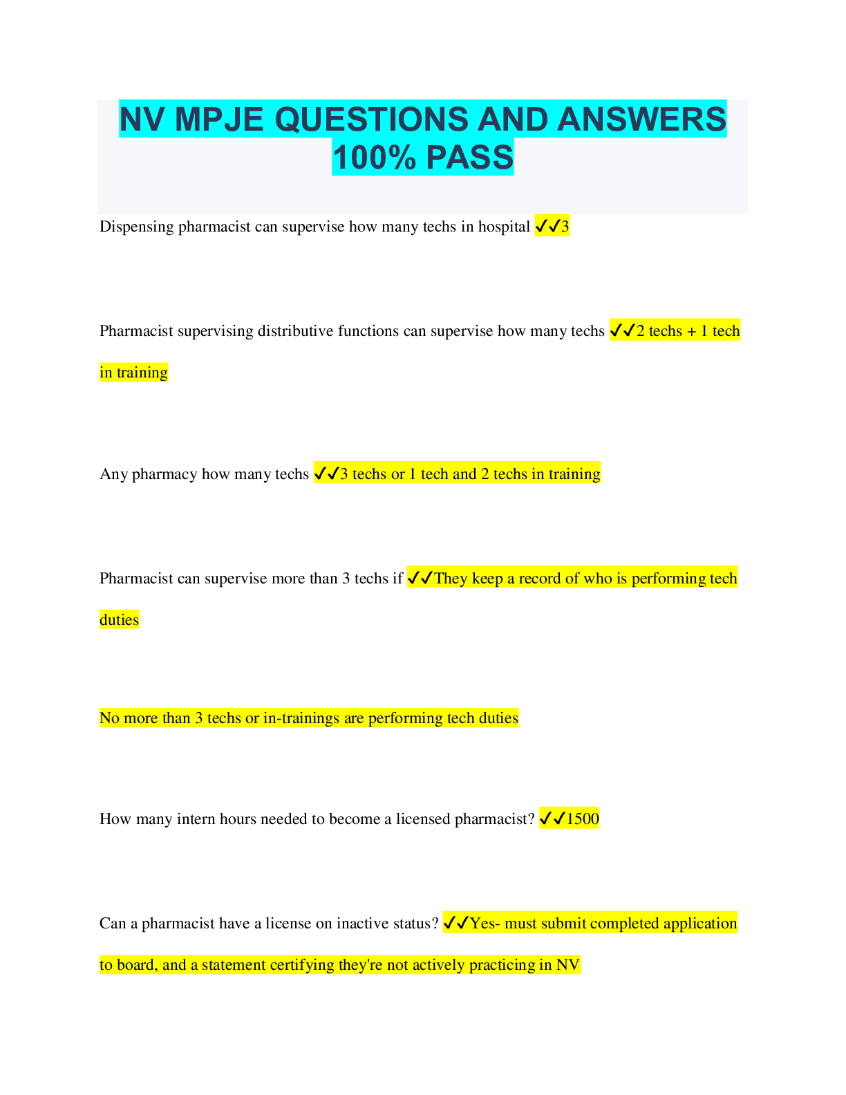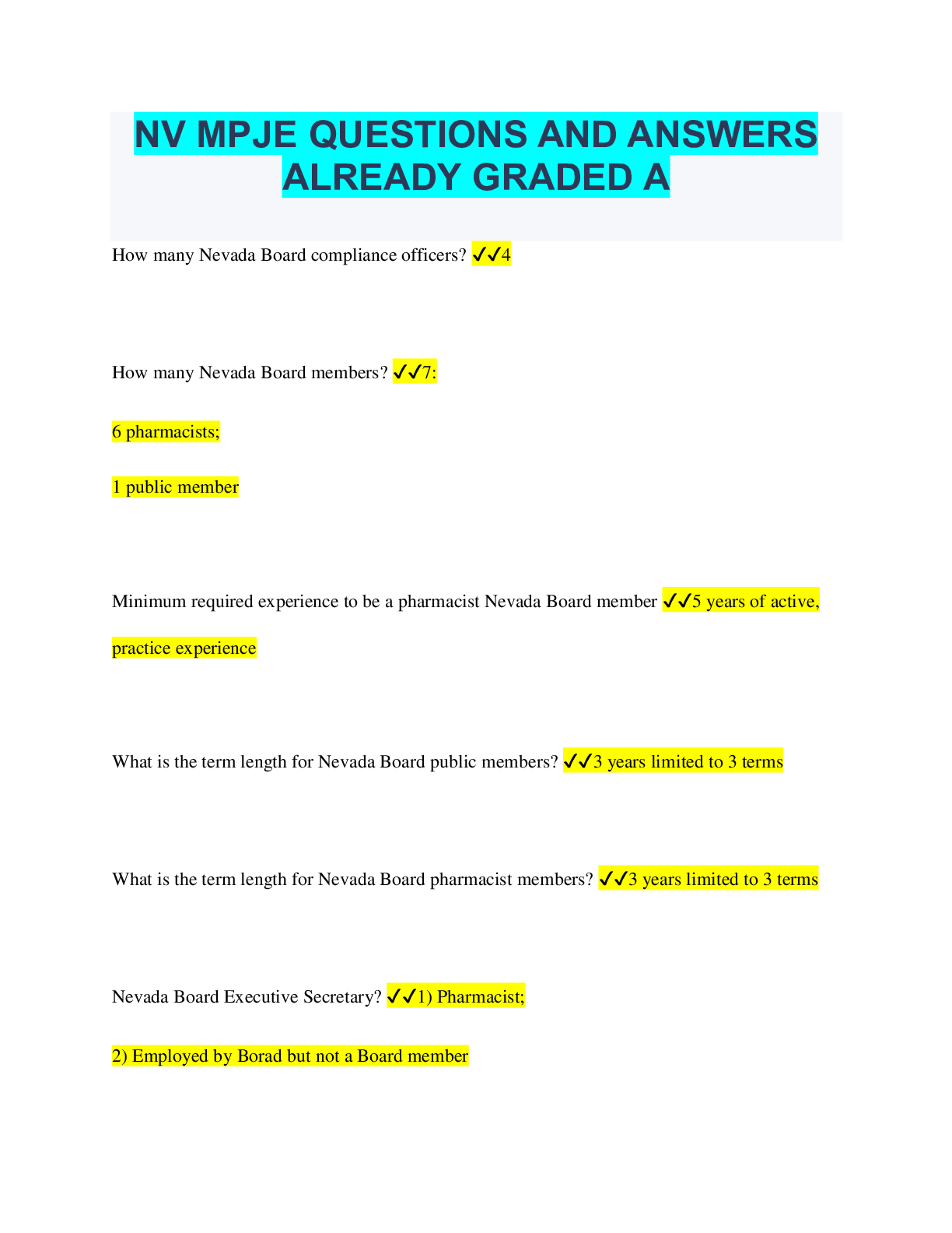 Social Sciences > QUESTIONS & ANSWERS > NV MPJE QUESTIONS AND ANSWERS ALREADY GRADED A (All)