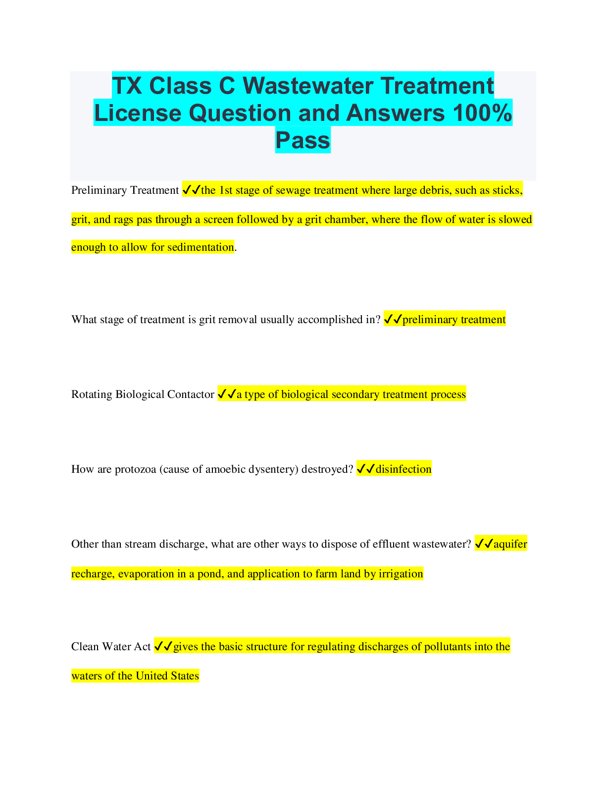 Social Sciences > QUESTIONS & ANSWERS > TX Class C Wastewater Treatment License Question and Answers 100% Pass (All)