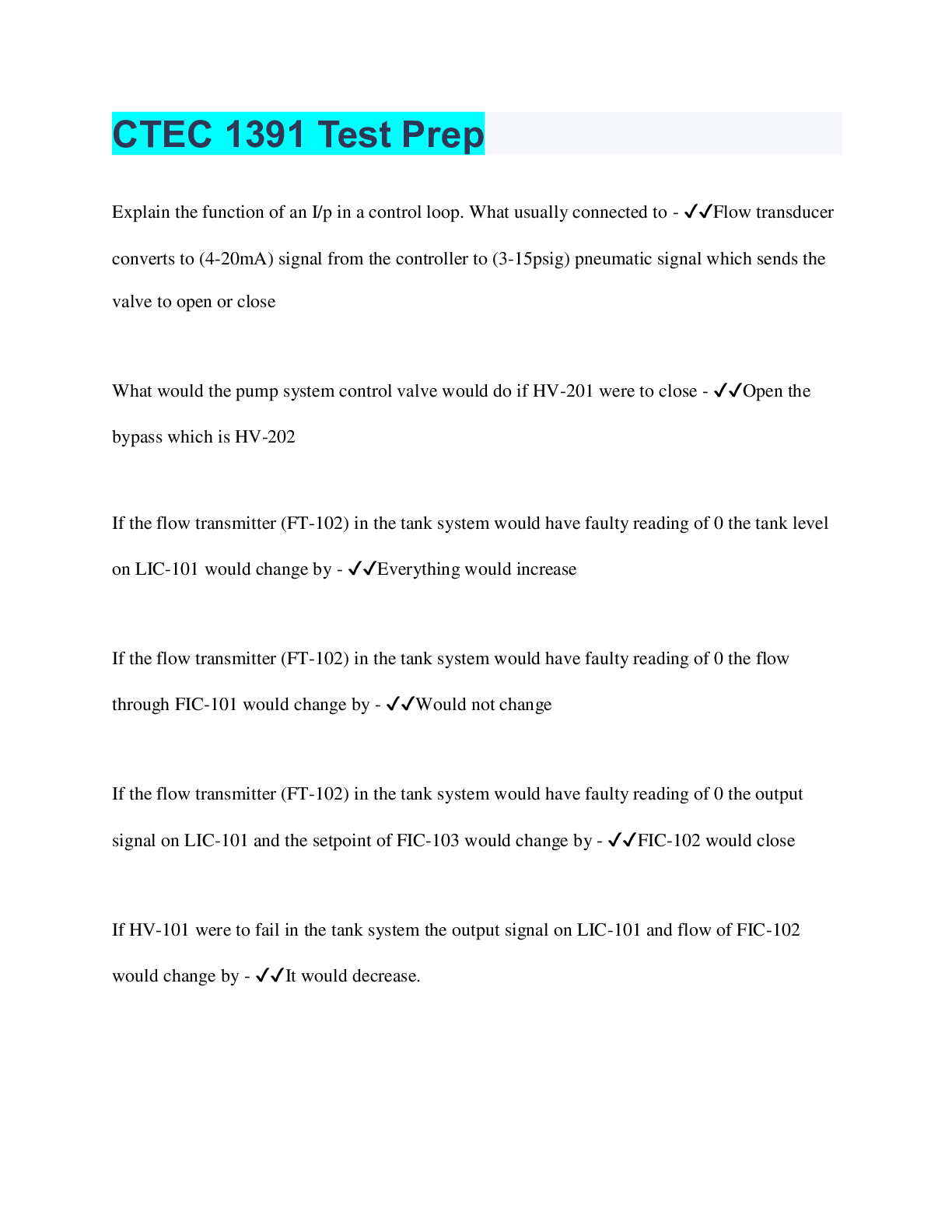 Social Sciences > QUESTIONS & ANSWERS > CTEC 1391 Test Prep (All)