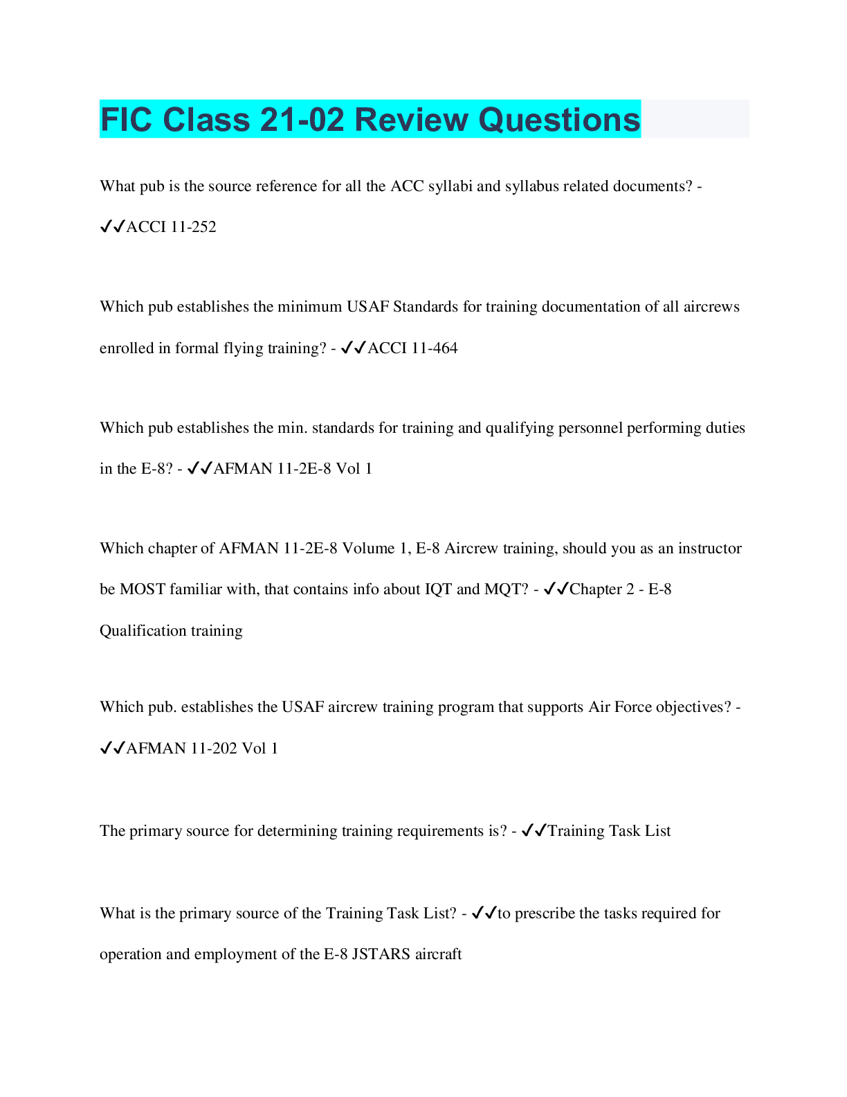 Social Sciences > QUESTIONS & ANSWERS > FIC Class 21-02 Review Questions (All)