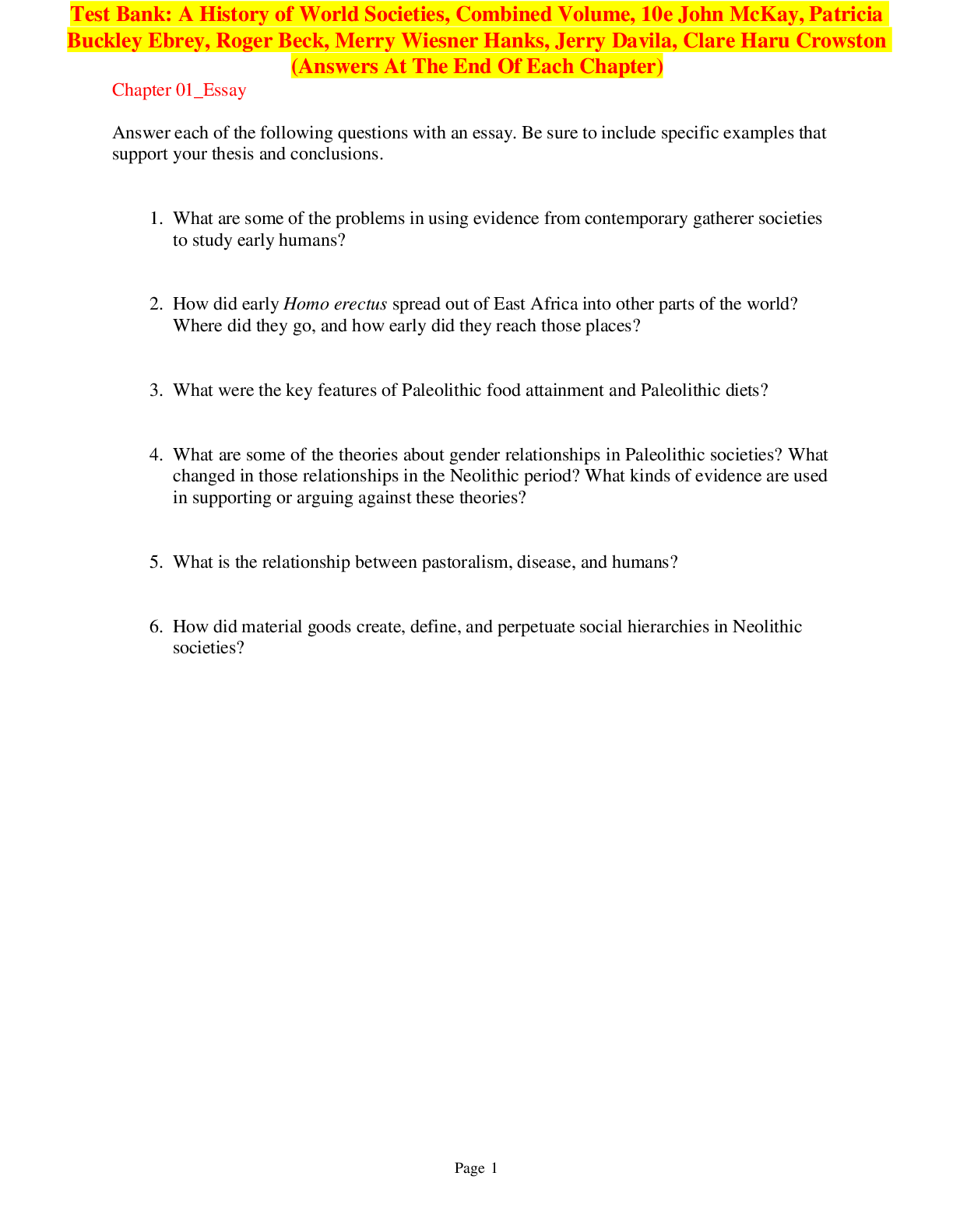 Social Sciences > TEST BANKS > Test Bank: A History of World Societies, Combined Volume 10th Edition by John McKay, Patricia Buckley Ebrey A+ (All)