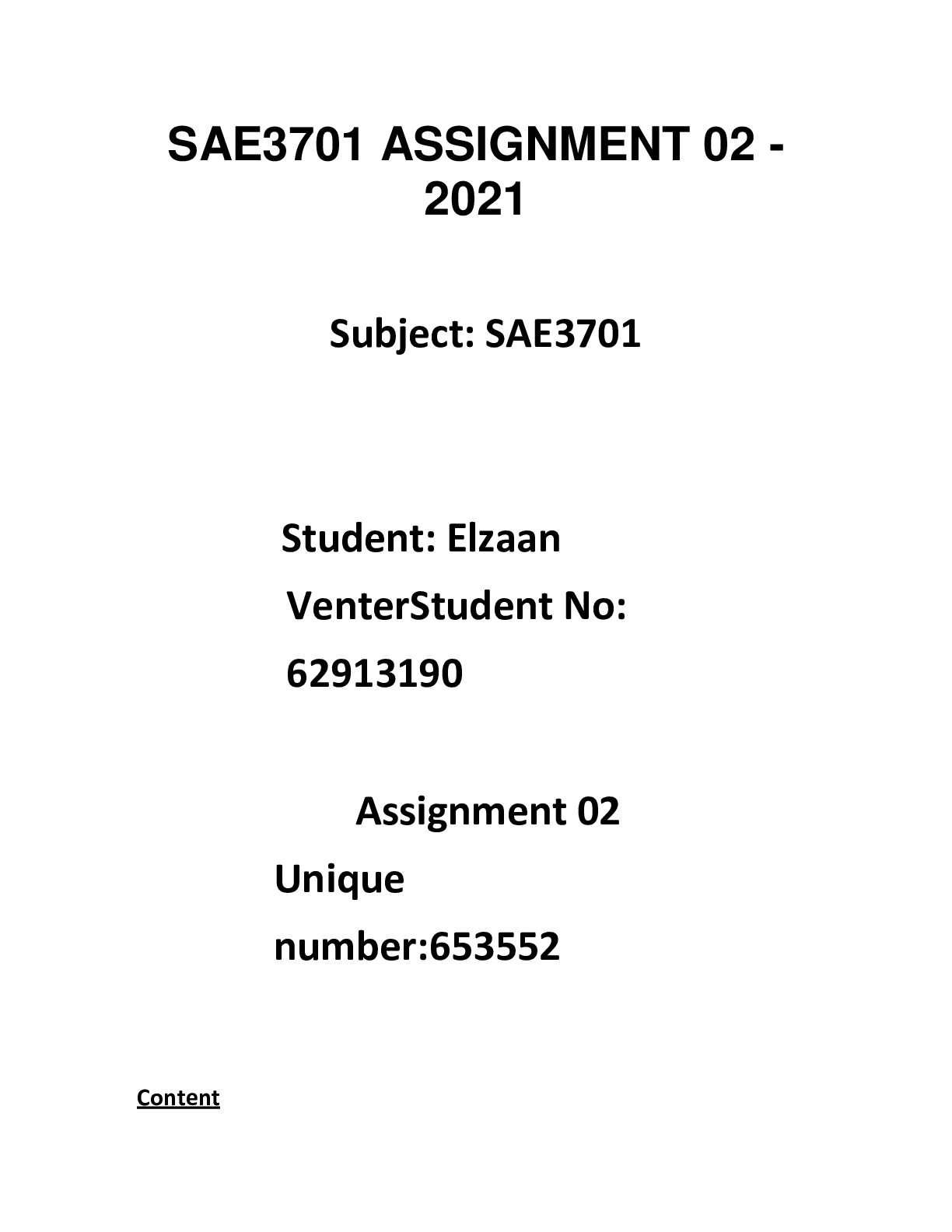 Social Sciences > QUESTIONS & ANSWERS > SAE3701 ASSIGNMENT 02 - 2021 (All)