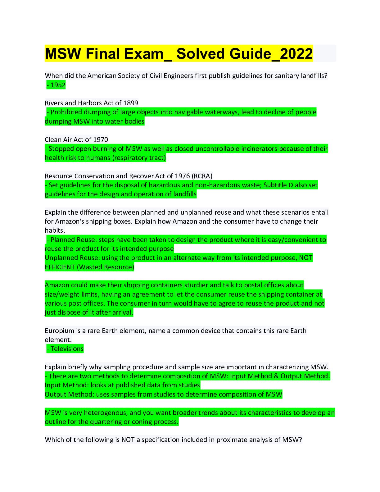 Social Sciences > EXAM > MSW Final Exam / Master of Social Work Final test; answered latest 2022, A+ guide. (All)