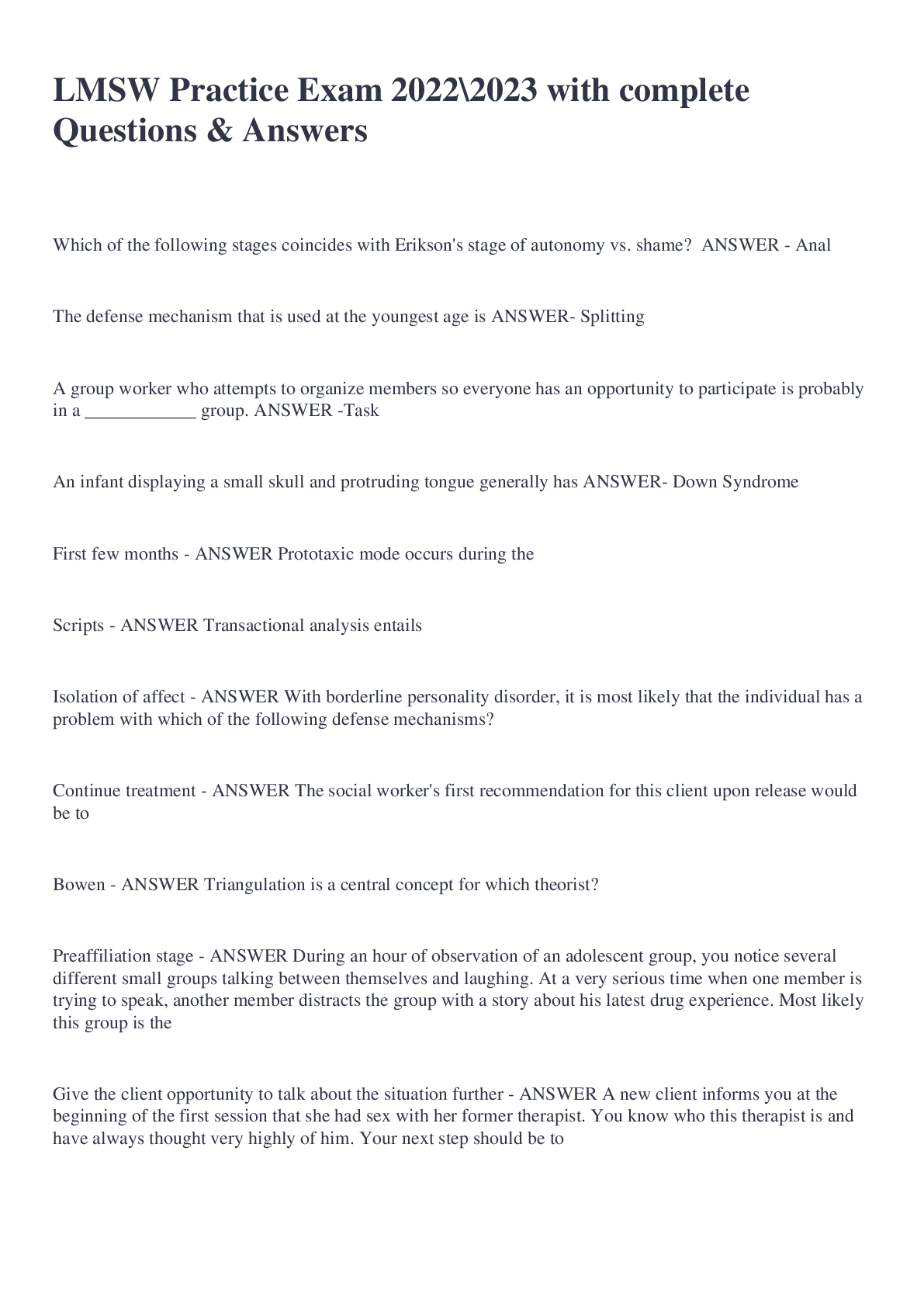Social Sciences > EXAMs > LMSW Practice Test Questions (Answered 100%) (All)