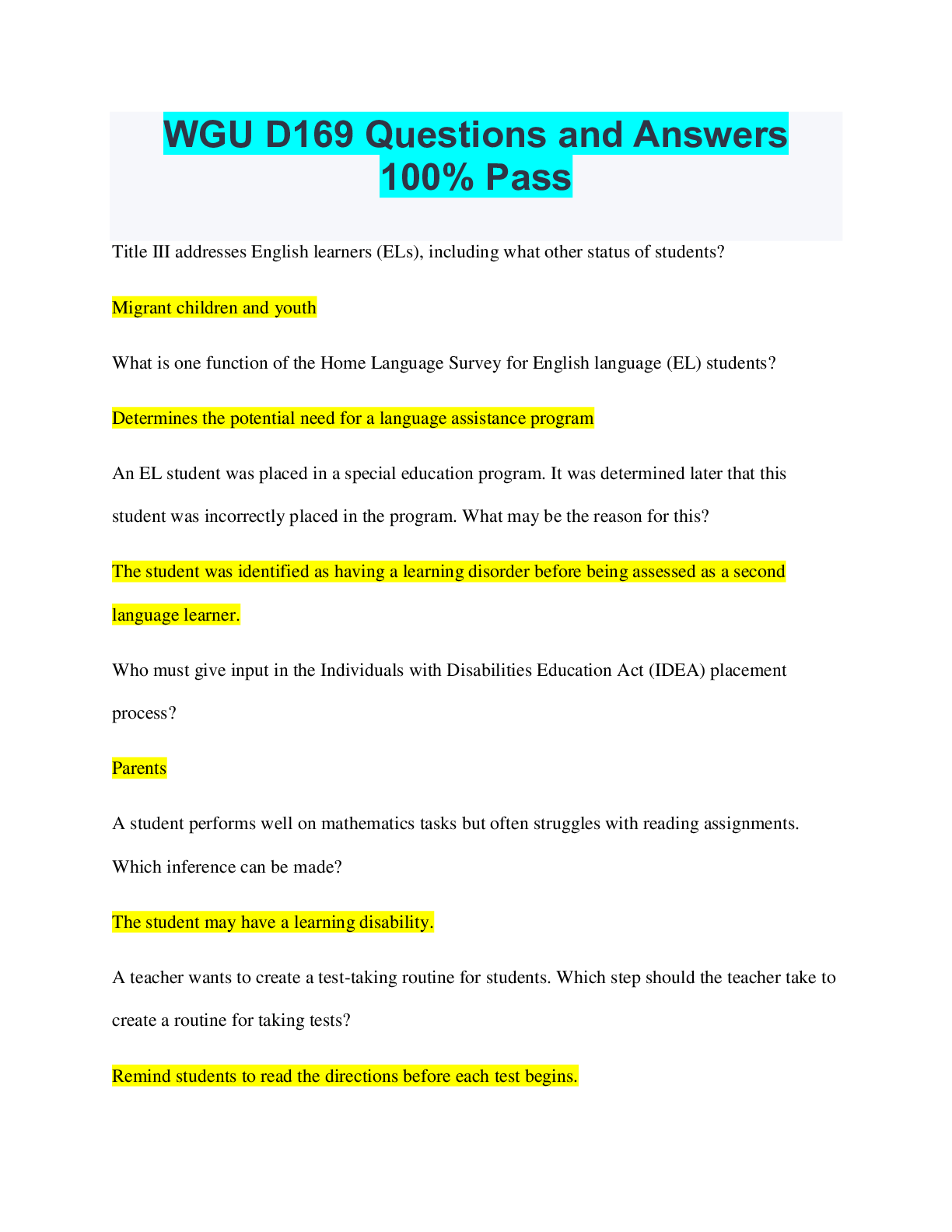 Social Sciences > EXAM > WGU C202 Questions and Answers Latest Updated 2022 (All)