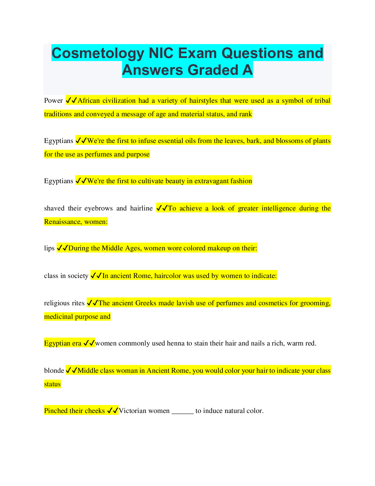 Social Sciences > EXAMs > Cosmetology NIC Exam Questions and Answers Graded A (All)