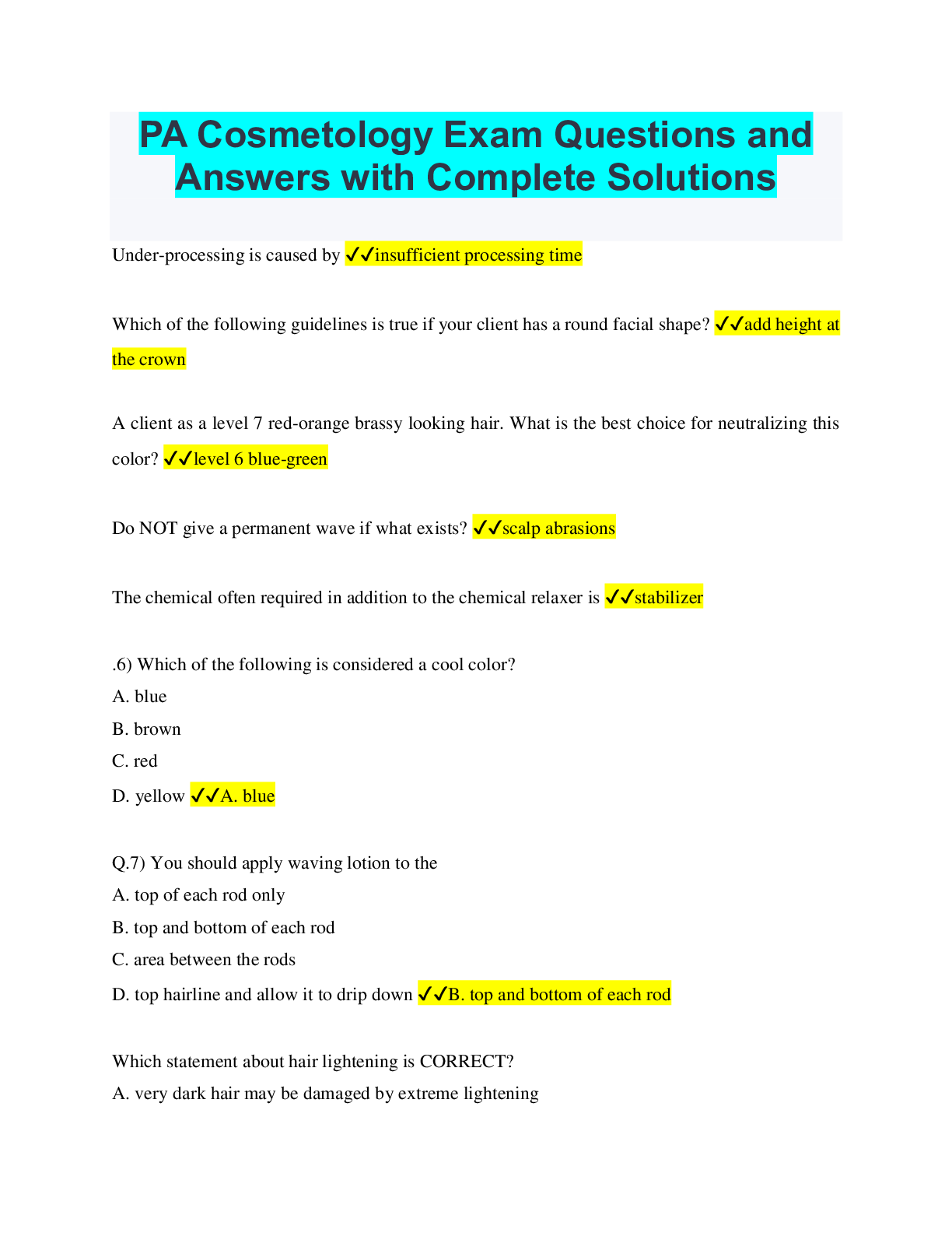 Social Sciences > EXAMs > PA Cosmetology Exam Questions and Answers with Complete Solutions (All)