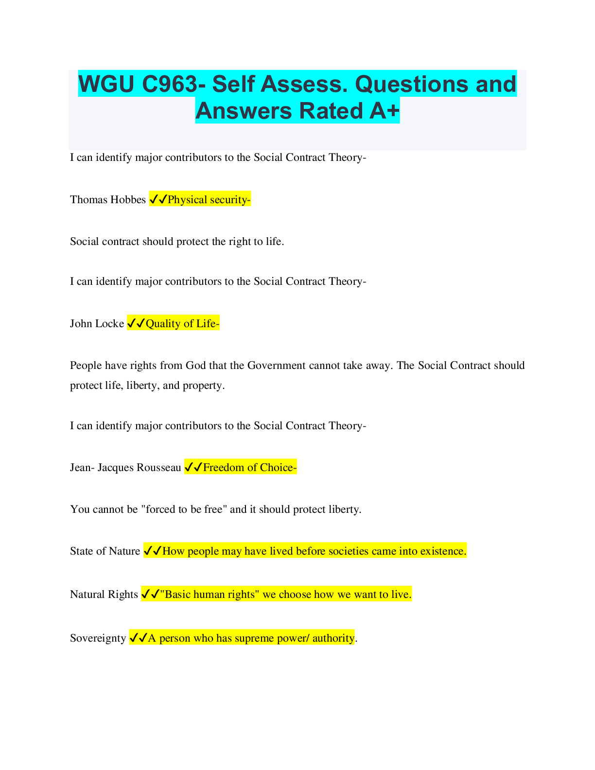Social Sciences > QUESTIONS & ANSWERS > WGU C963- Self Assess. Questions and Answers Rated A+ (All)
