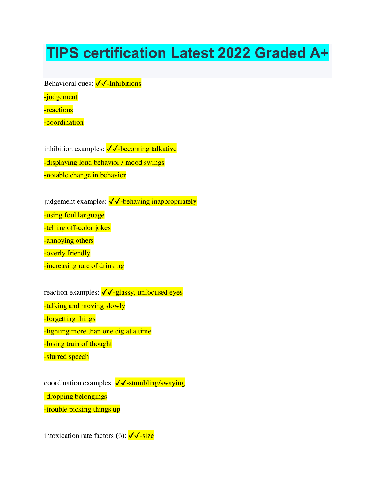 Social Sciences > QUESTIONS & ANSWERS > TIPS certification Latest 2022 Graded A+ (All)