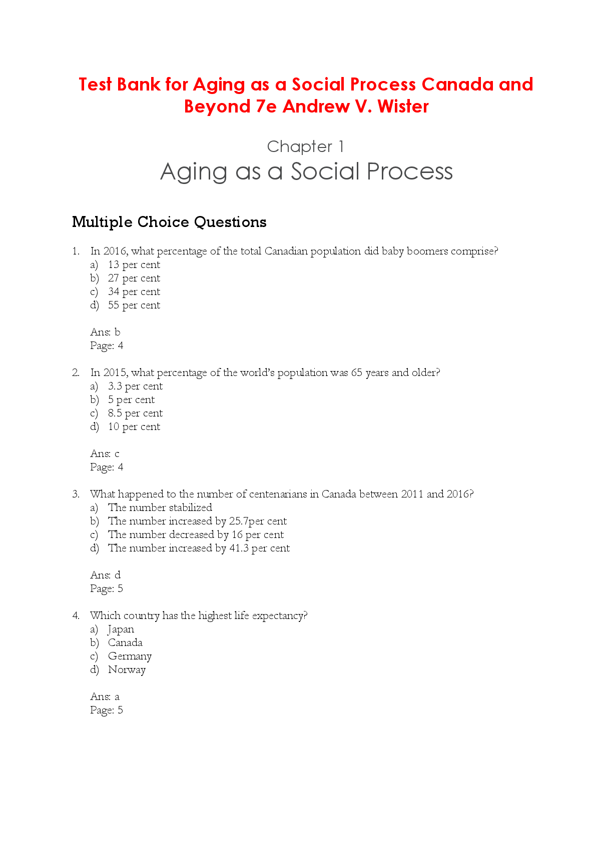 Social Sciences > TEST BANKS > Test Bank for Aging as a Social Process Canada and Beyond 7e Andrew V. Wister (All)