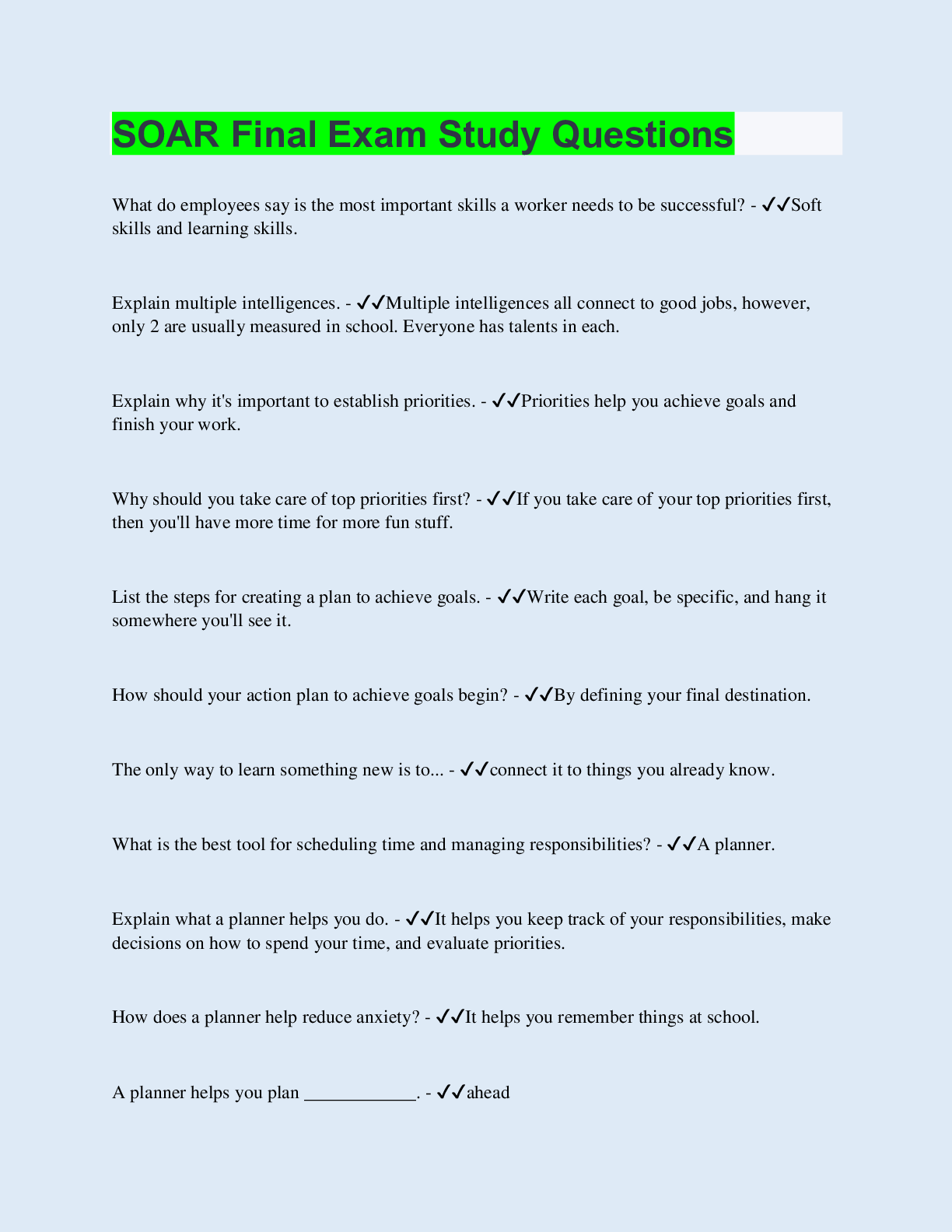 Social Sciences > QUESTIONS & ANSWERS > SOAR Final Exam Study Questions (All)