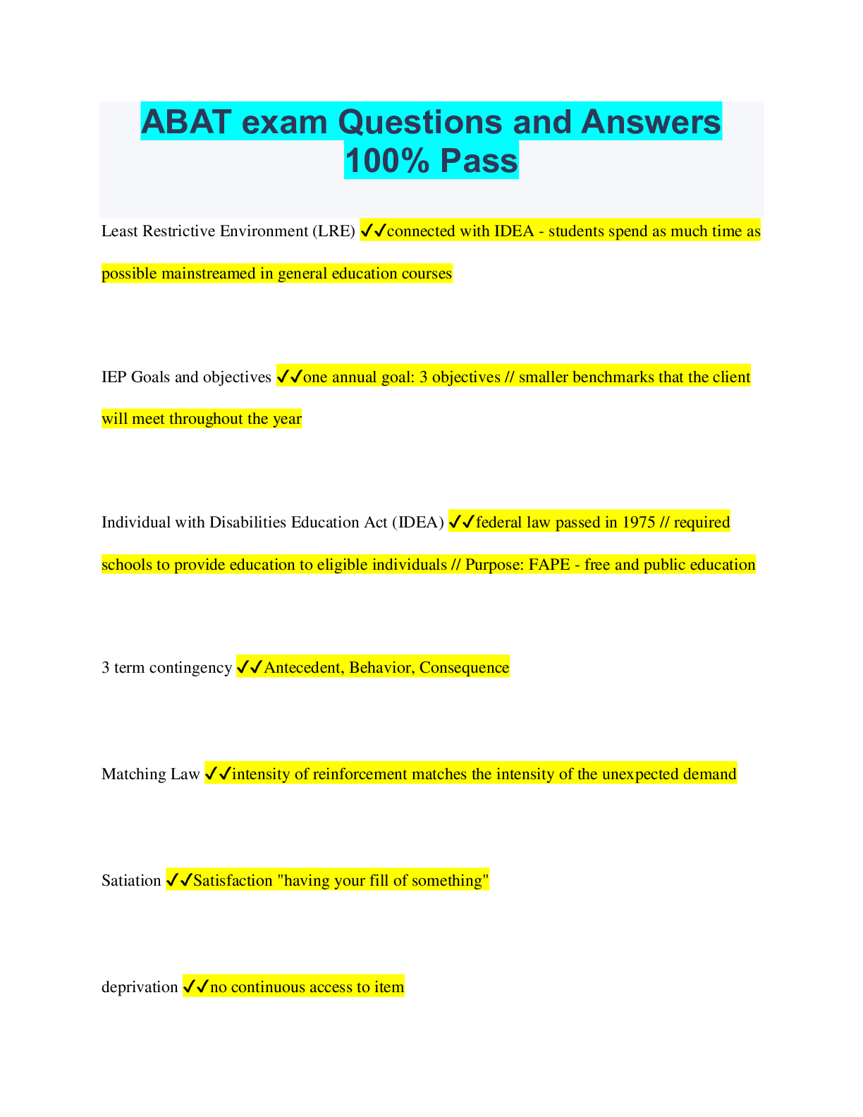 Social Sciences > QUESTIONS & ANSWERS > ABAT exam Questions and Answers 100% Pass (All)