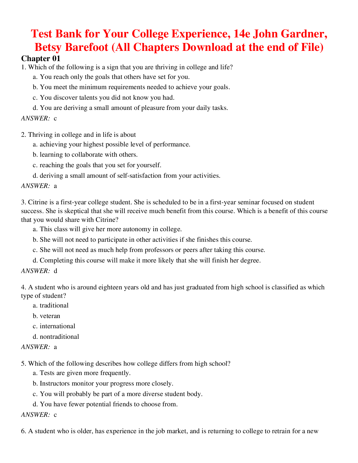 Social Sciences > TEST BANKS > Your College Experience, 14th Edition John Gardner, Betsy Barefoot | TEST BANK (All)