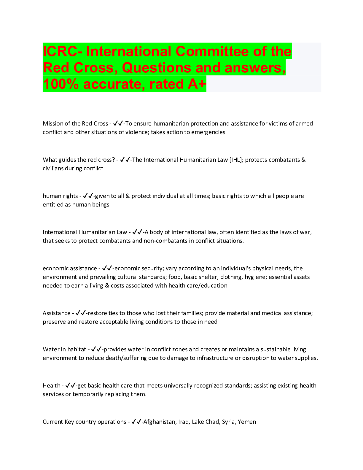 Social Sciences > QUESTIONS & ANSWERS > ICRC- International Committee of the Red Cross, Questions and answers, 100% accurate, rated A+ (All)